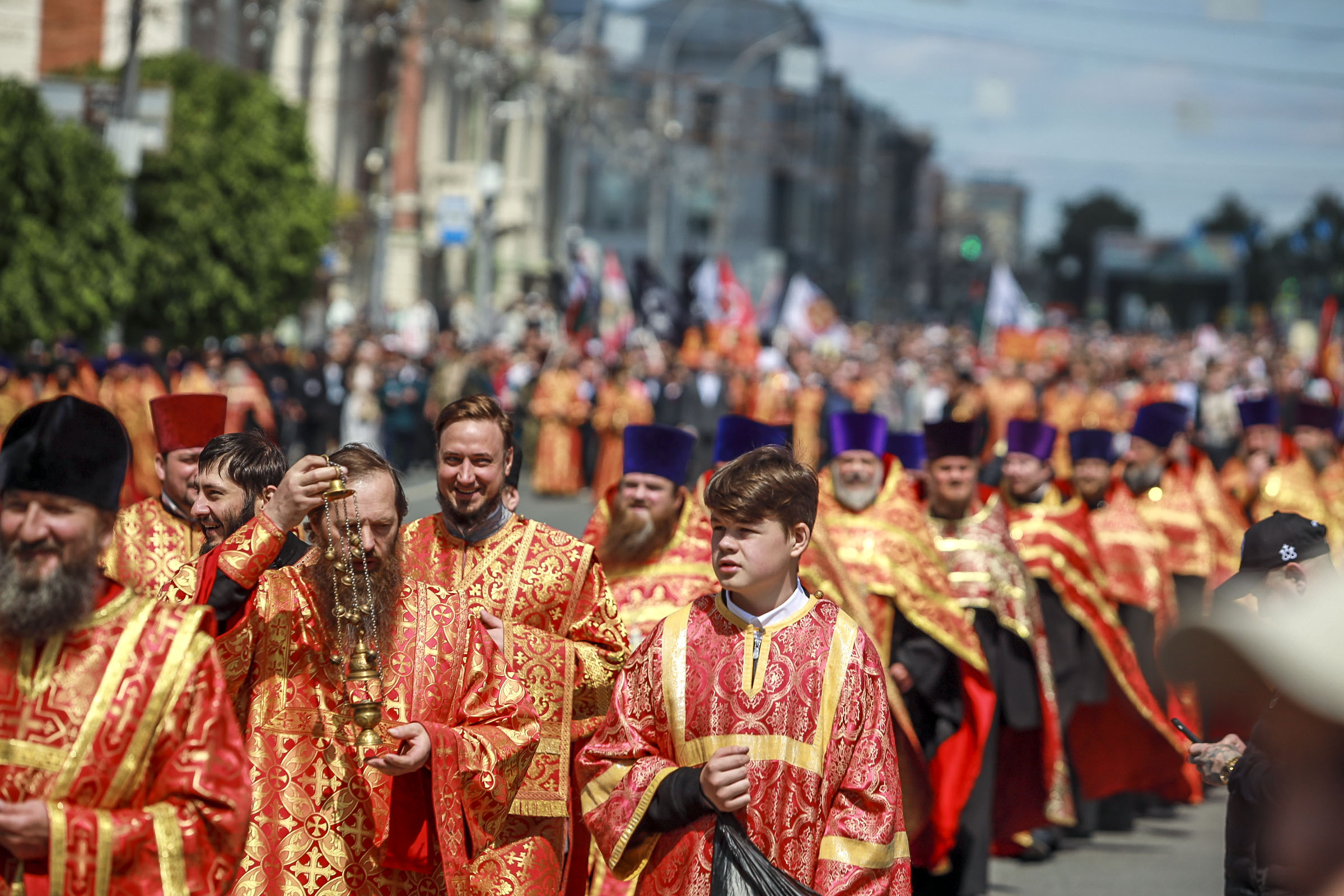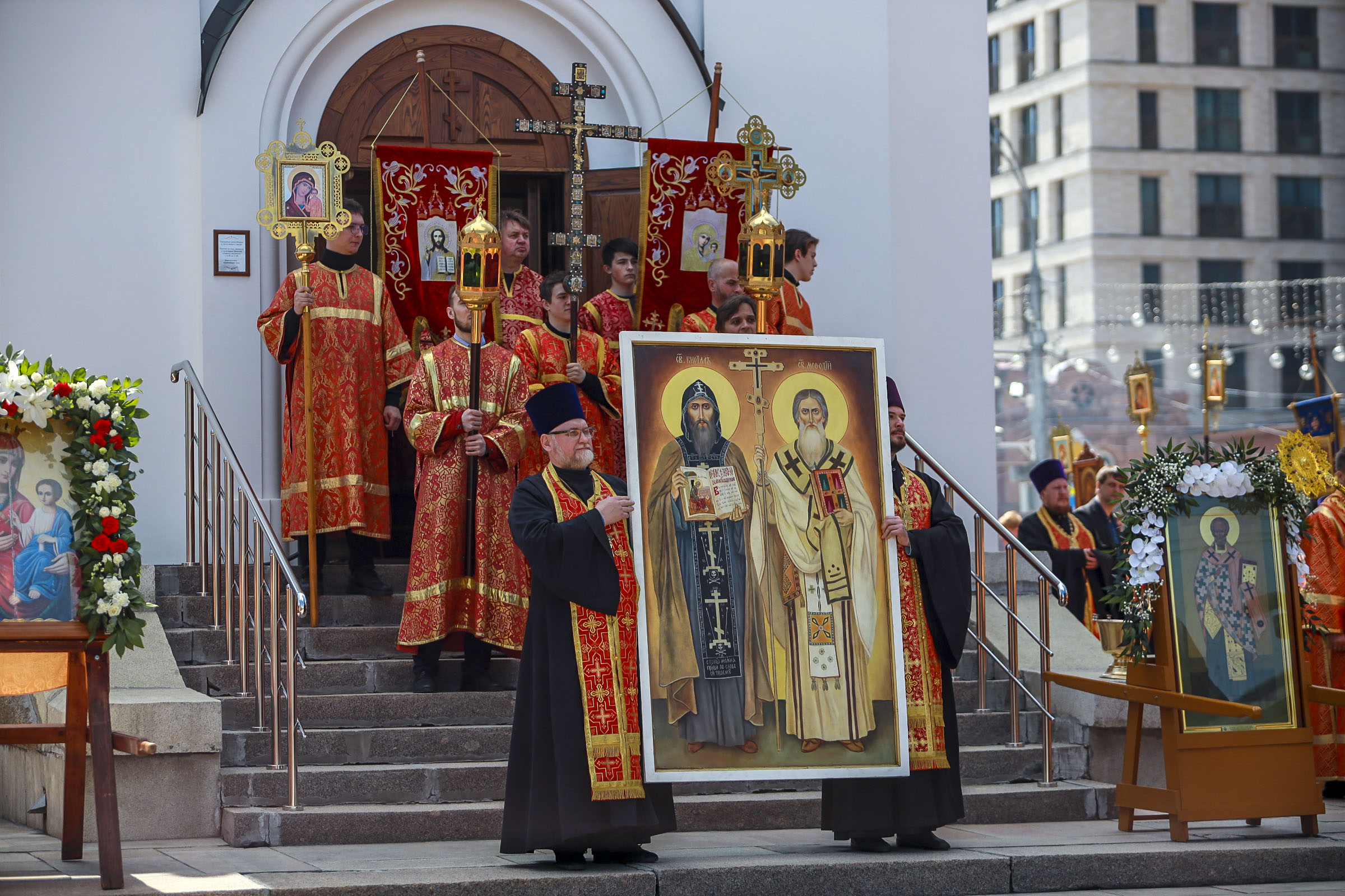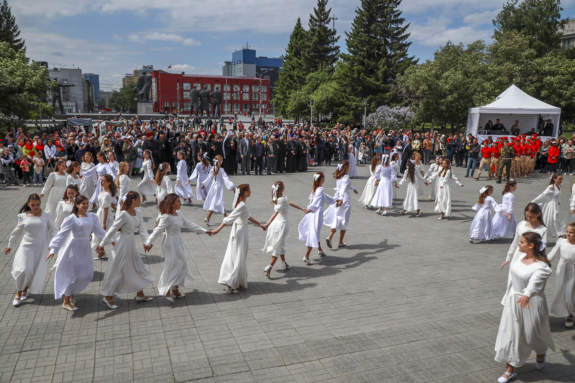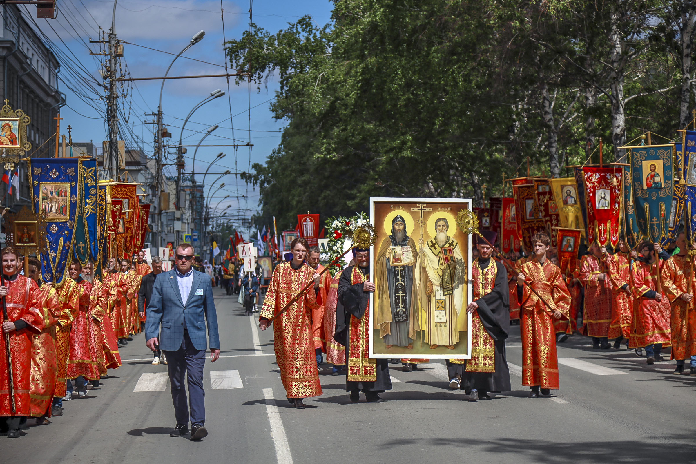 Религиозное шествие с буквами славянского алфавита растянулось в воскресенье, 25 мая, по Красному проспекту. День создателей азбуки Кирилла и Мефодия традиционно отметили масштабным крестным ходом. В нём приняли участие тысячи человек.