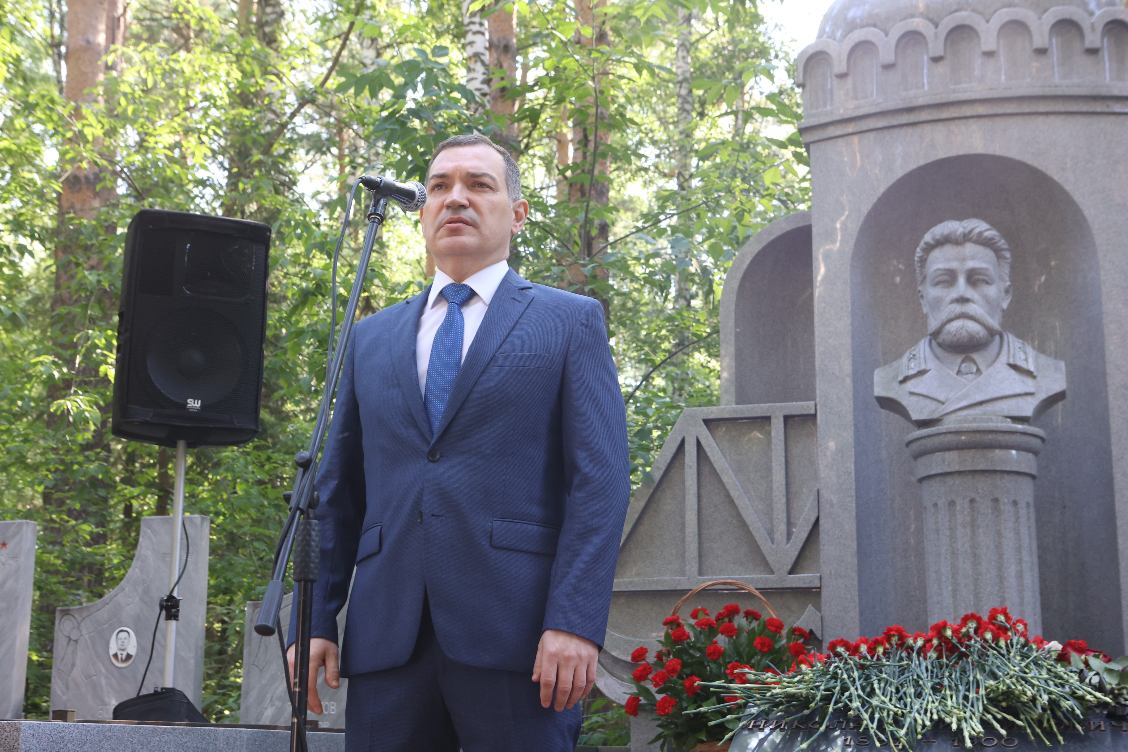 Мэр Максим Кудрявцев принял участие в возложении цветов к могиле одного из основателей Новосибирска Николая Михайловича Тихомирова.