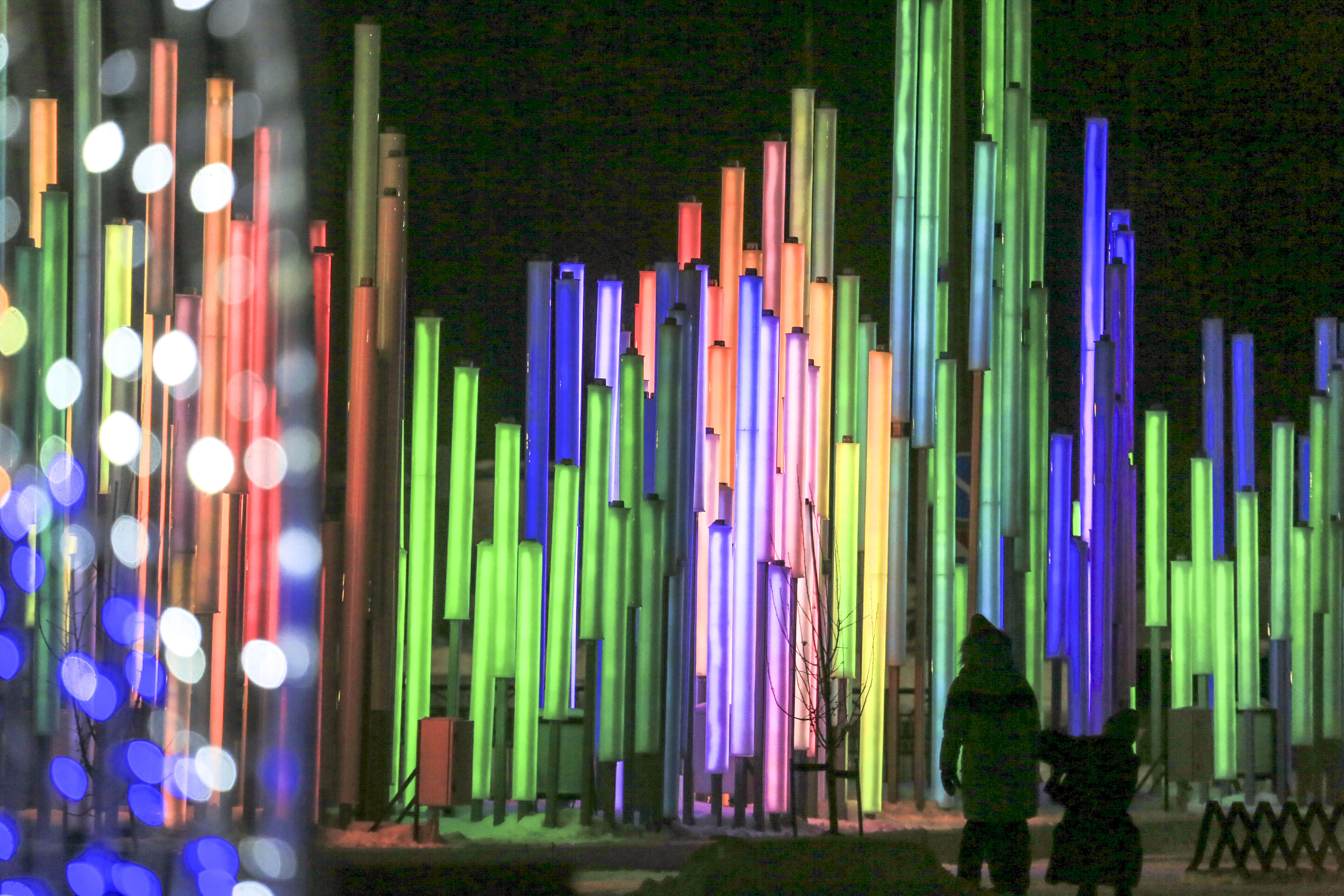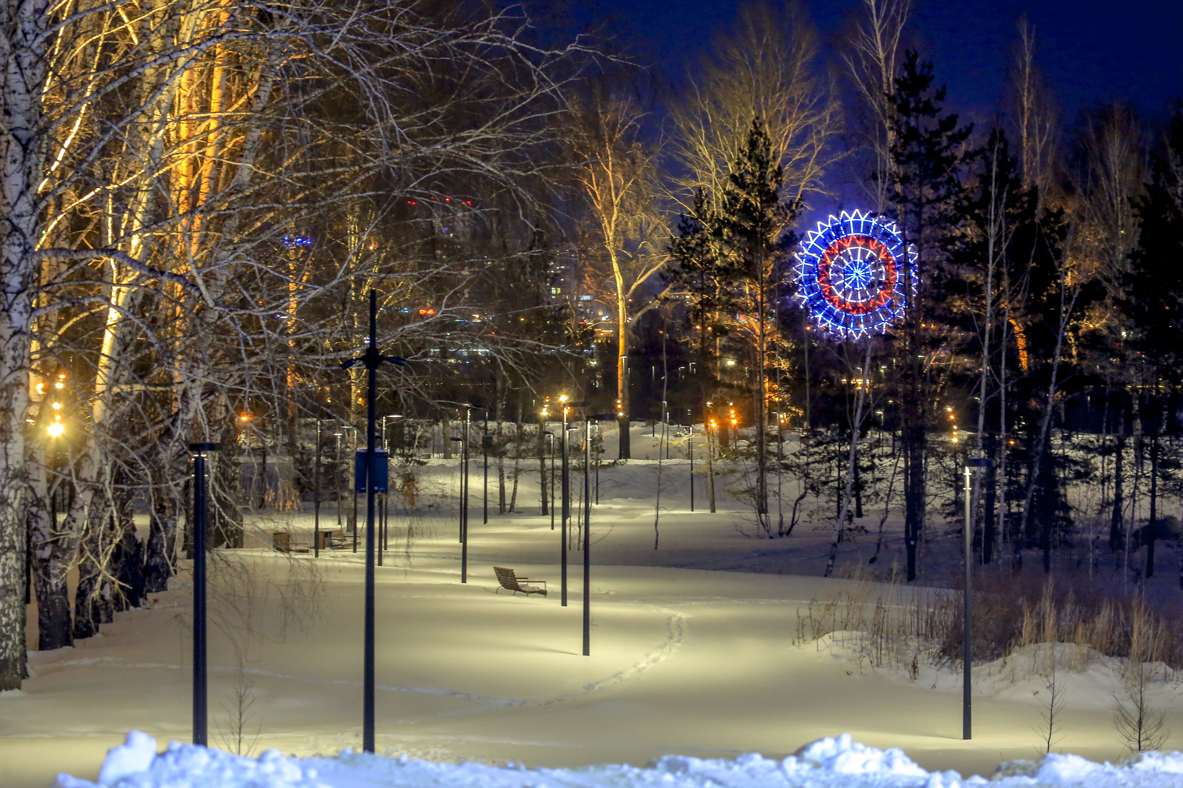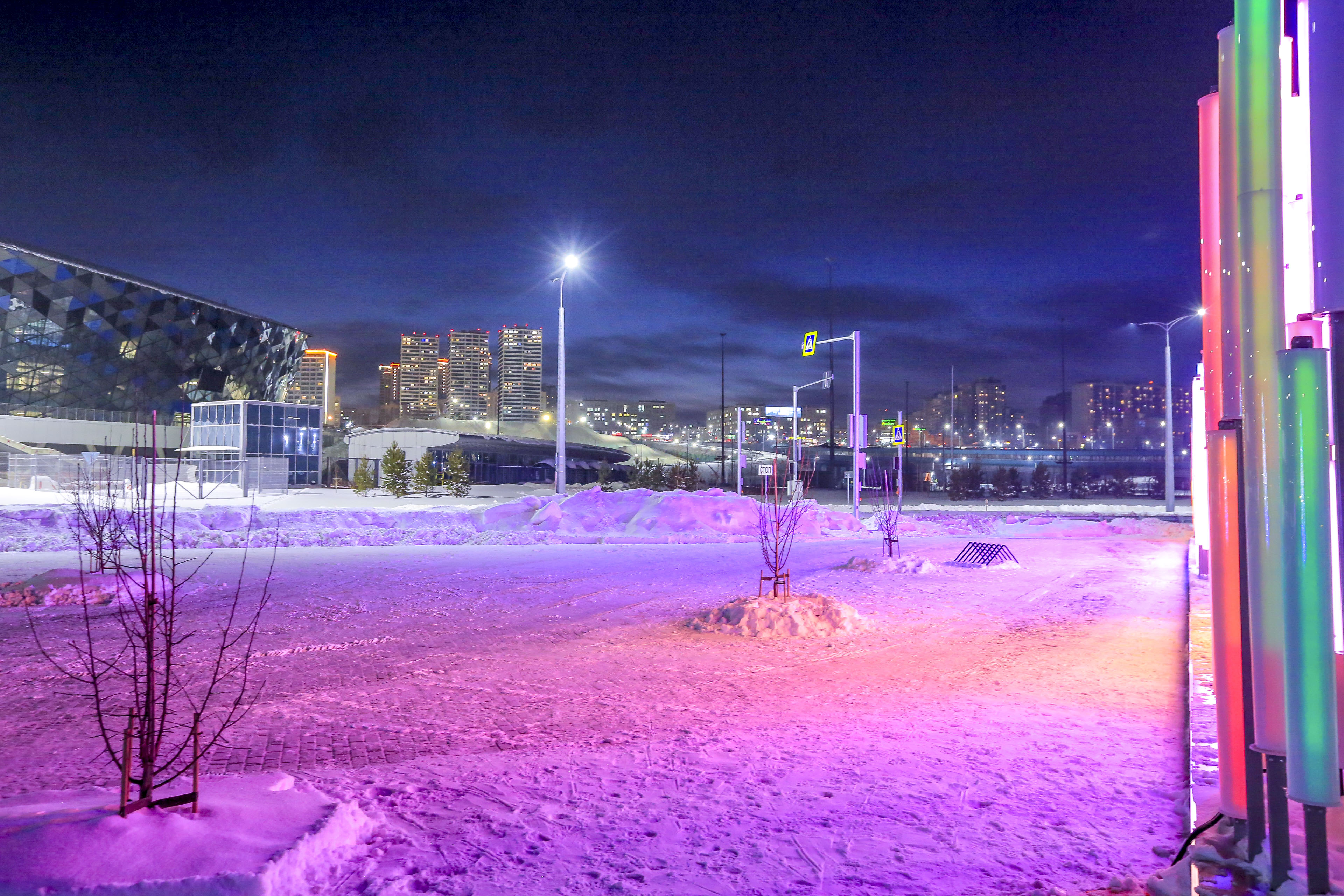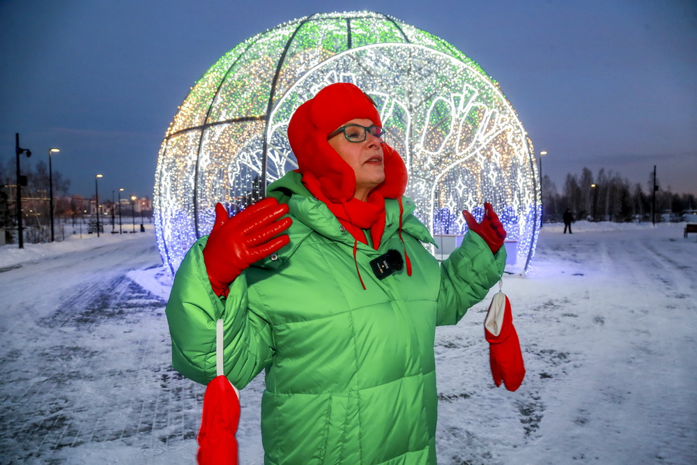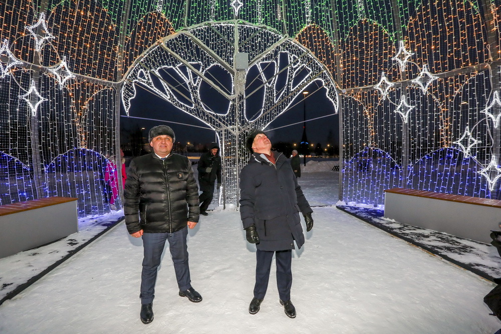 «Это новый, столичный парк. Вот сейчас ещё немножко стемнеет, и заиграет полностью цветовая гамма: и подсветка деревьев, и цифровая ёлка будут более выигрышно выглядеть. Освещены все дорожки для пешеходных, велосипедных прогулок.