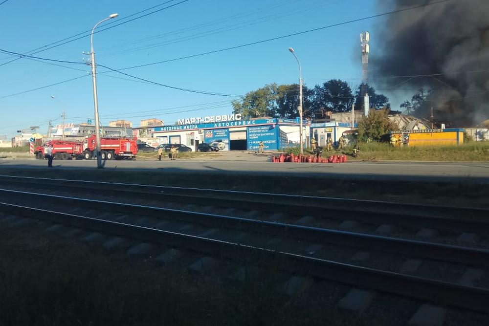 На Гусинобродском шоссе в Октябрьском районе Новосибирска продолжается тушение автозаправочной станции. Пожарным удалось остановить распространение огня. На место происшествия приехал мэр города Анатолий Локоть.