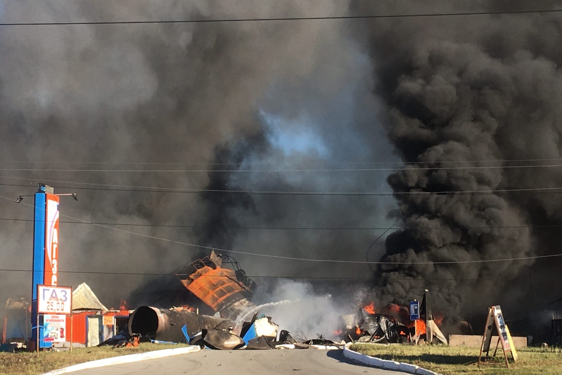 Горение осложнялось взрывами газовых баллонов и ёмкостей с топливом. Погибших, по оперативной информации, нет. Среди пострадавших — двое сотрудников МЧС из числа тех, кто первым прибыл на горящую автозаправку. Обоих увезли в ожоговый центр.
