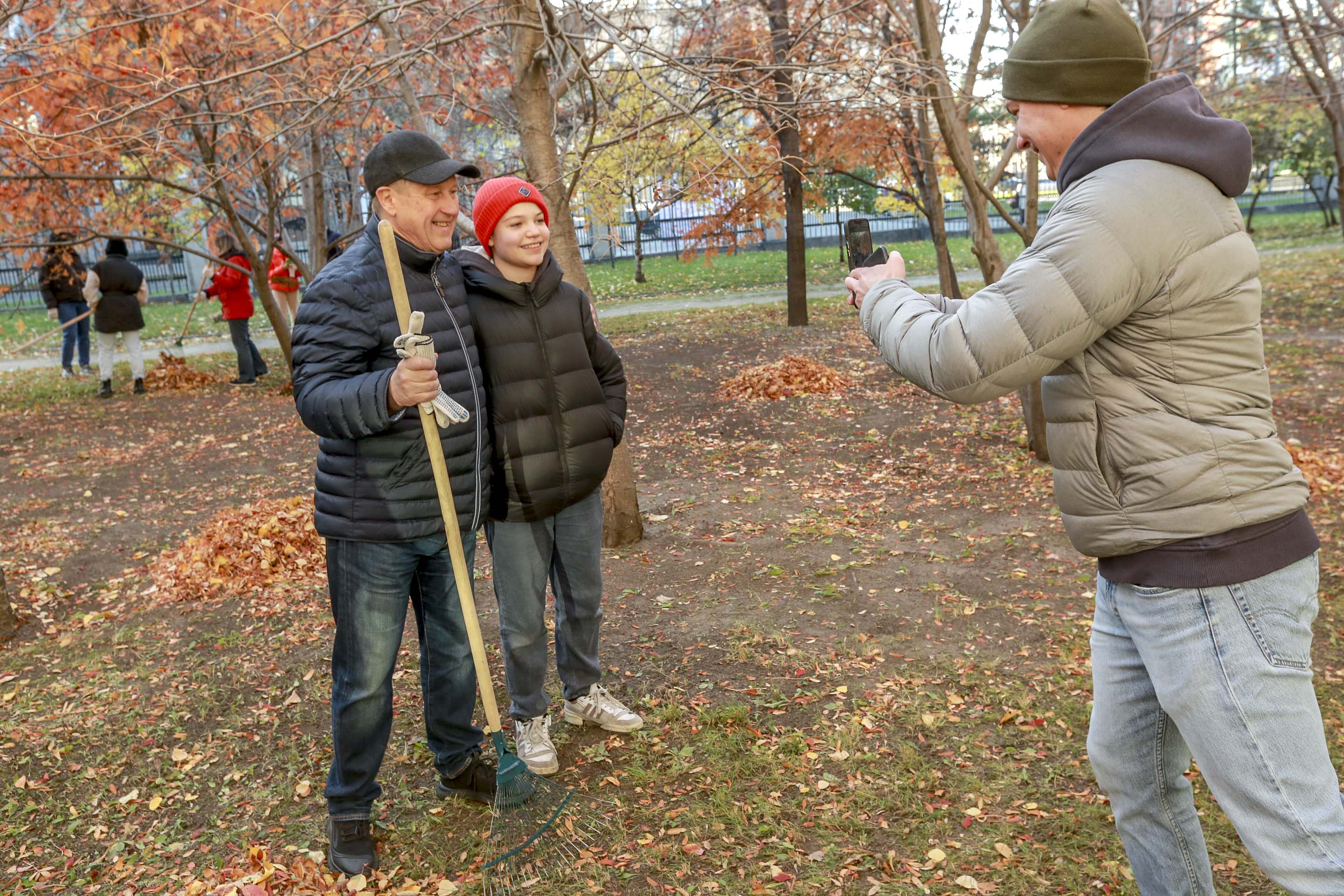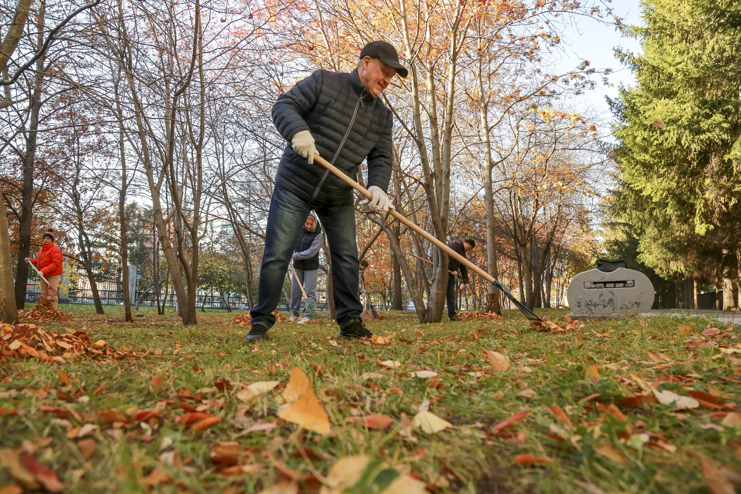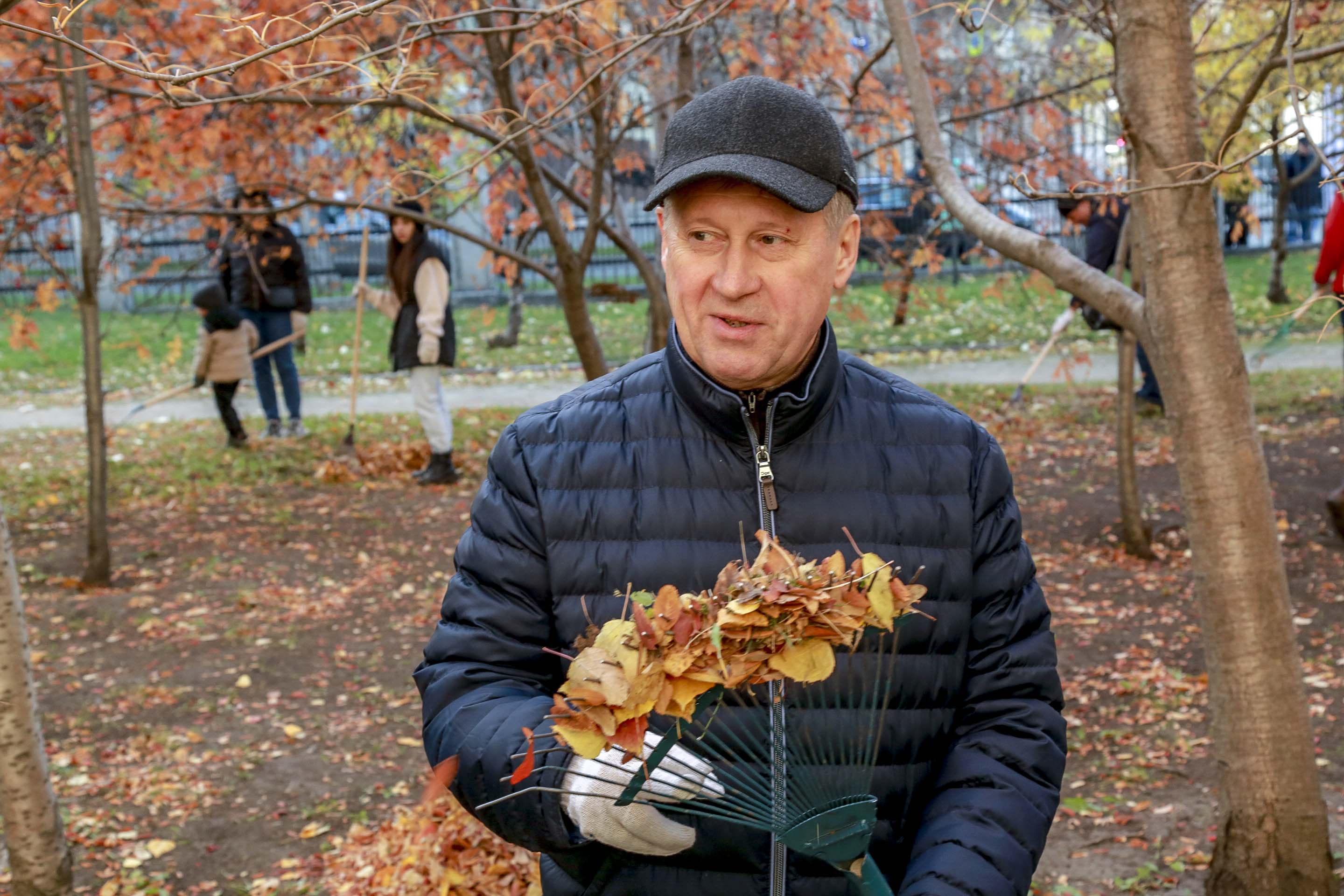 Мэр Локоть собрал опавшую листву в сквере Героев Революции
