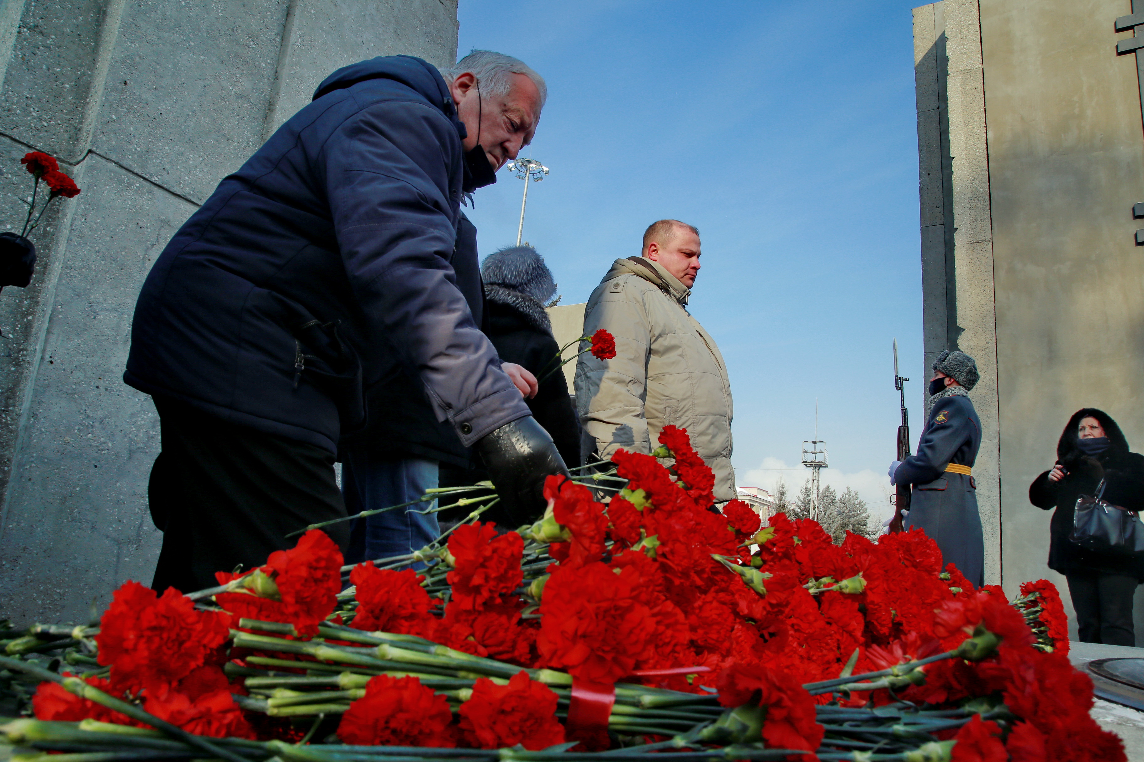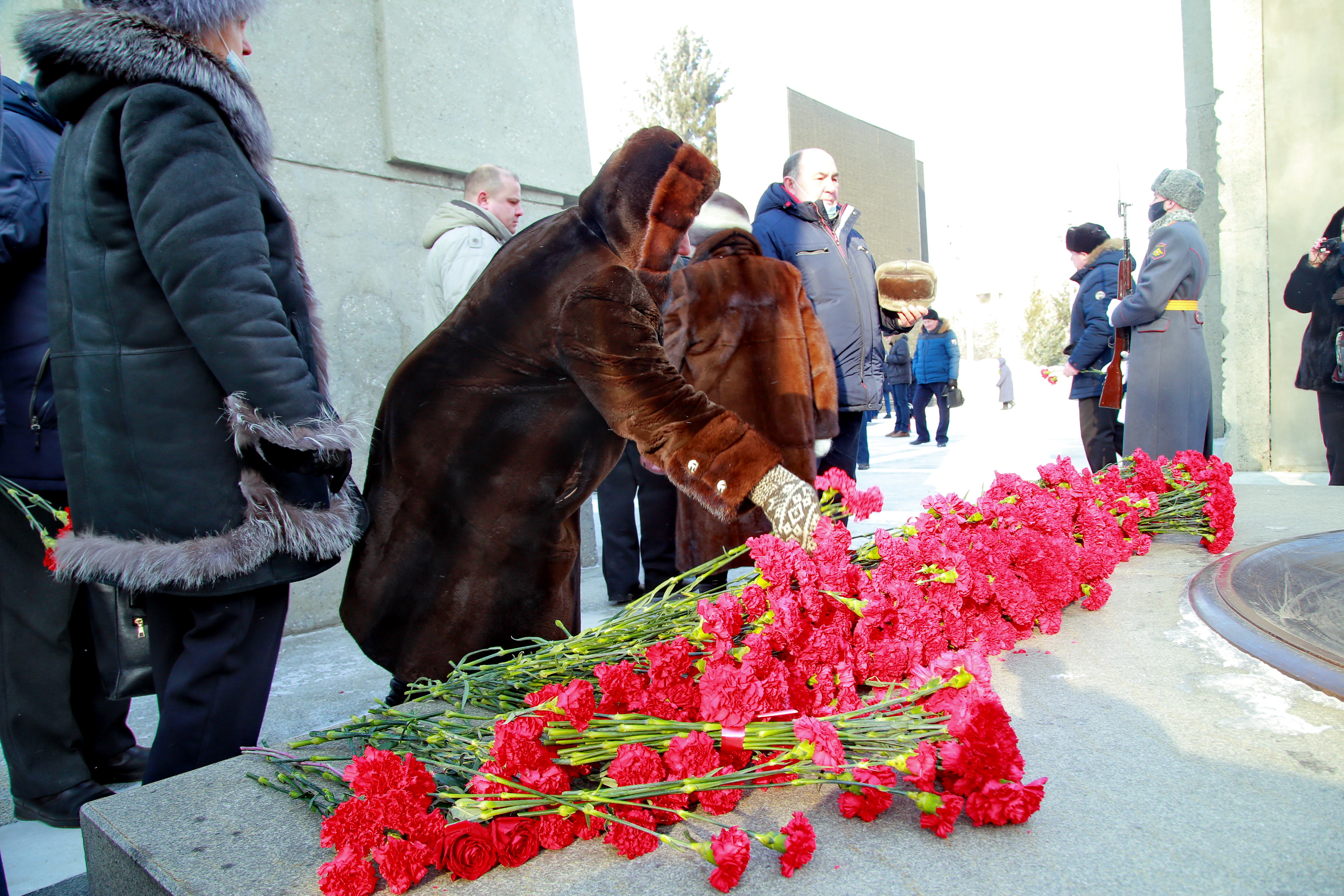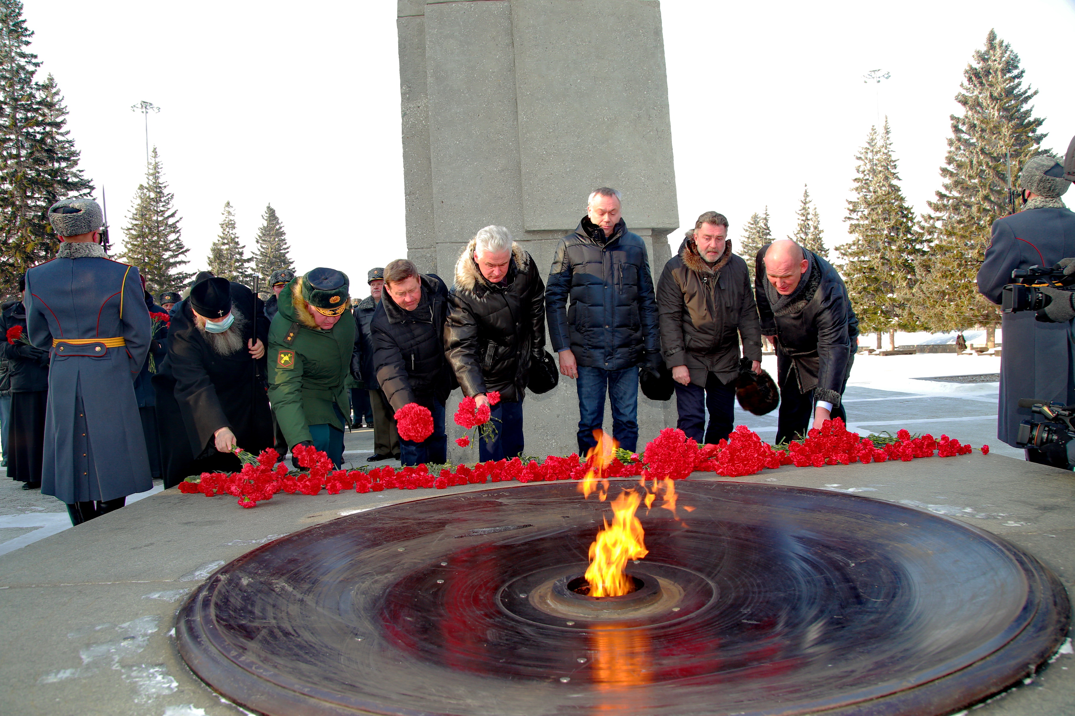 Мэр Новосибирска и губернатор возложили цветы к Вечному огню 23 февраля