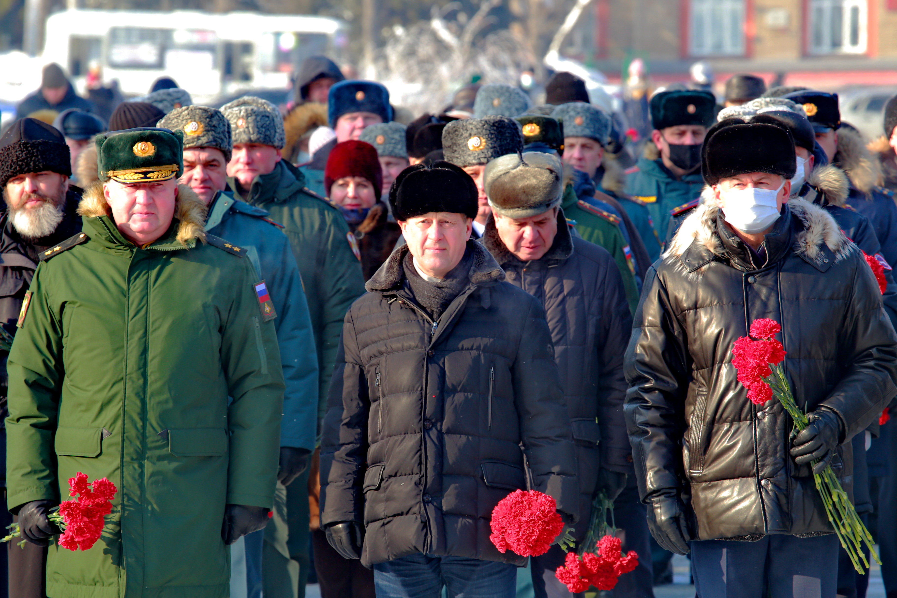 23 февраля первые лица города и области, руководство армии и силовых ведомств, депутаты и горожане почтили память воинов, которые пали, защищая Родину. В церемонии возложения цветов принял участие и сенатор Российской Федерации от Новосибирской области Александр Карелин.