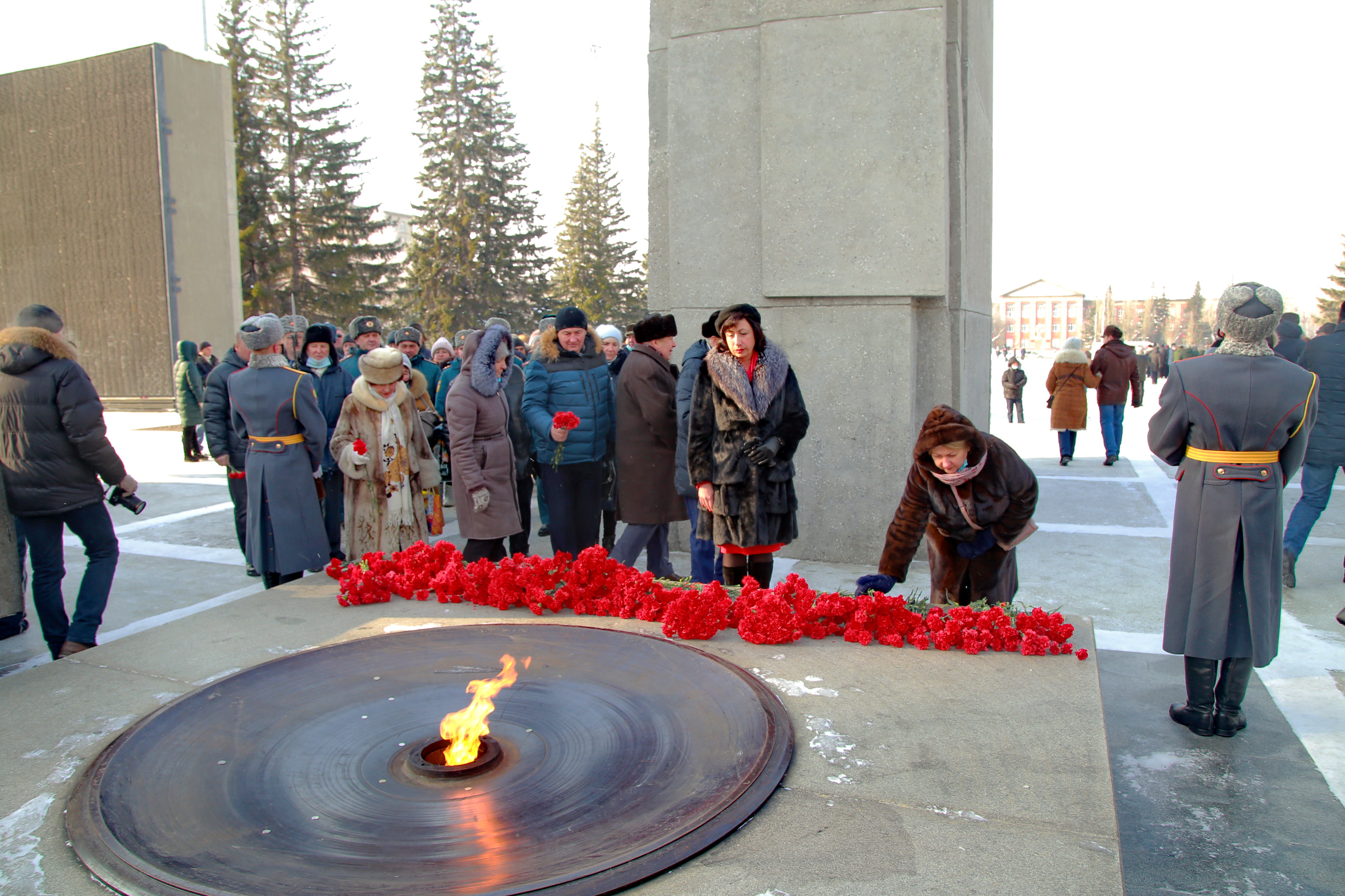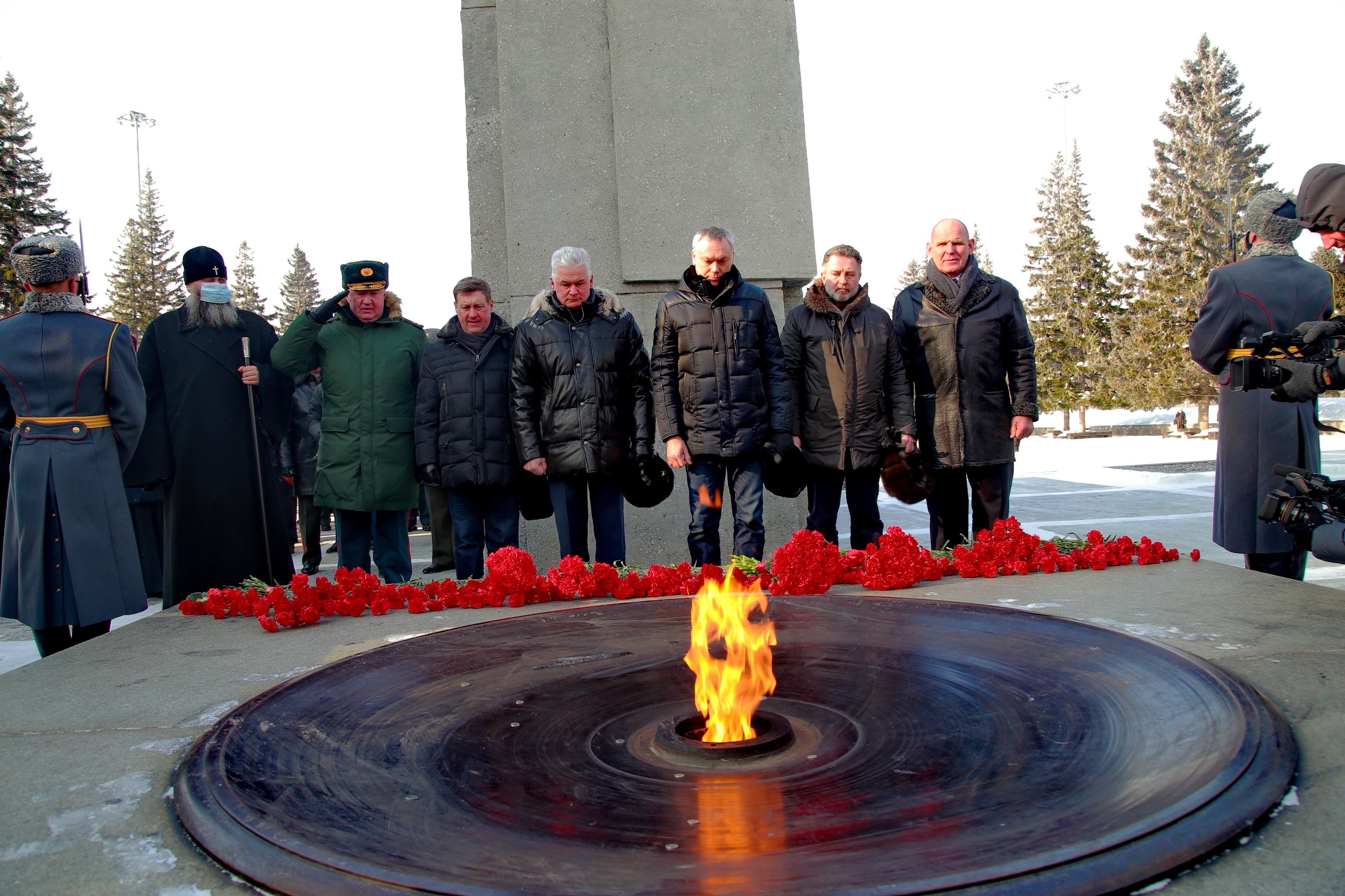 В День защитника Отечества, 23 февраля, в Новосибирске состоялось торжественное возложение цветов к Вечному огню на Монументе Славы. В церемонии приняли участие мэр Анатолий Локоть, губернатор Андрей Травников, митрополит Новосибирский и Бердский Никодим, армейское командование и другие горожане.