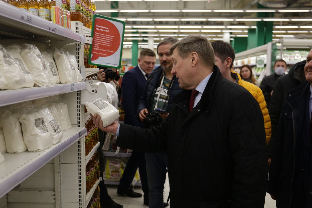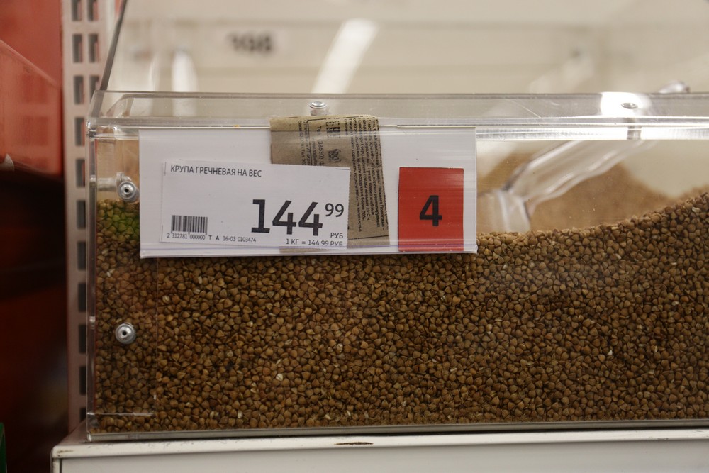 «Цена абсолютно адекватная. Гречка — от 90 или 100 рублей за килограмм. Гречка краснодарская, гречка алтайская — много сортов. Сахар — 89 рублей за килограмм», — перечисляет начальник департамента инвестиций, потребительского рынка, инноваций и предпринимательства мэрии Новосибирска Виталий Витухин.