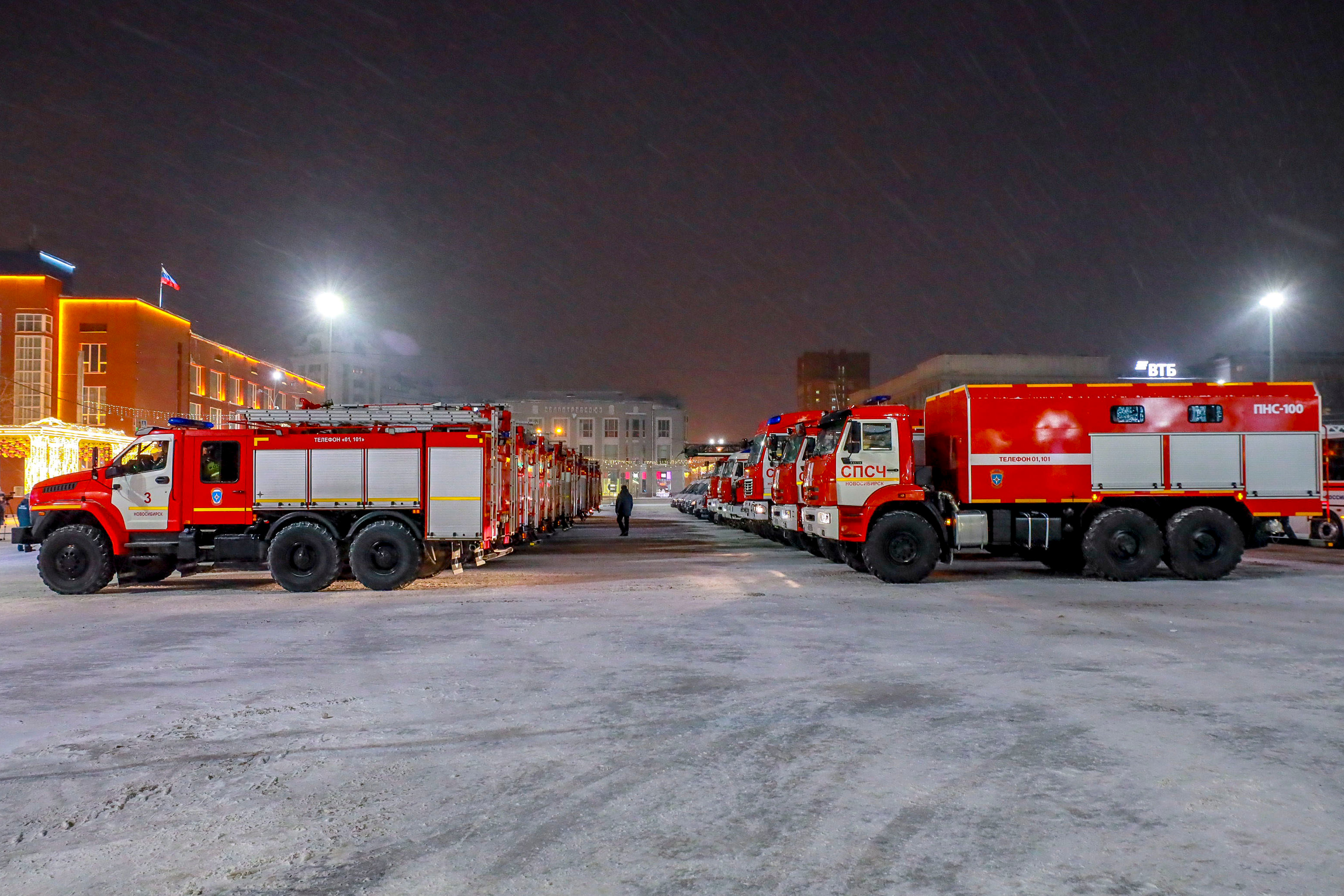 В честь праздника на площади Ленина состоялось торжественное построение пожарно-спасательных и аварийно-спасательных подразделений.