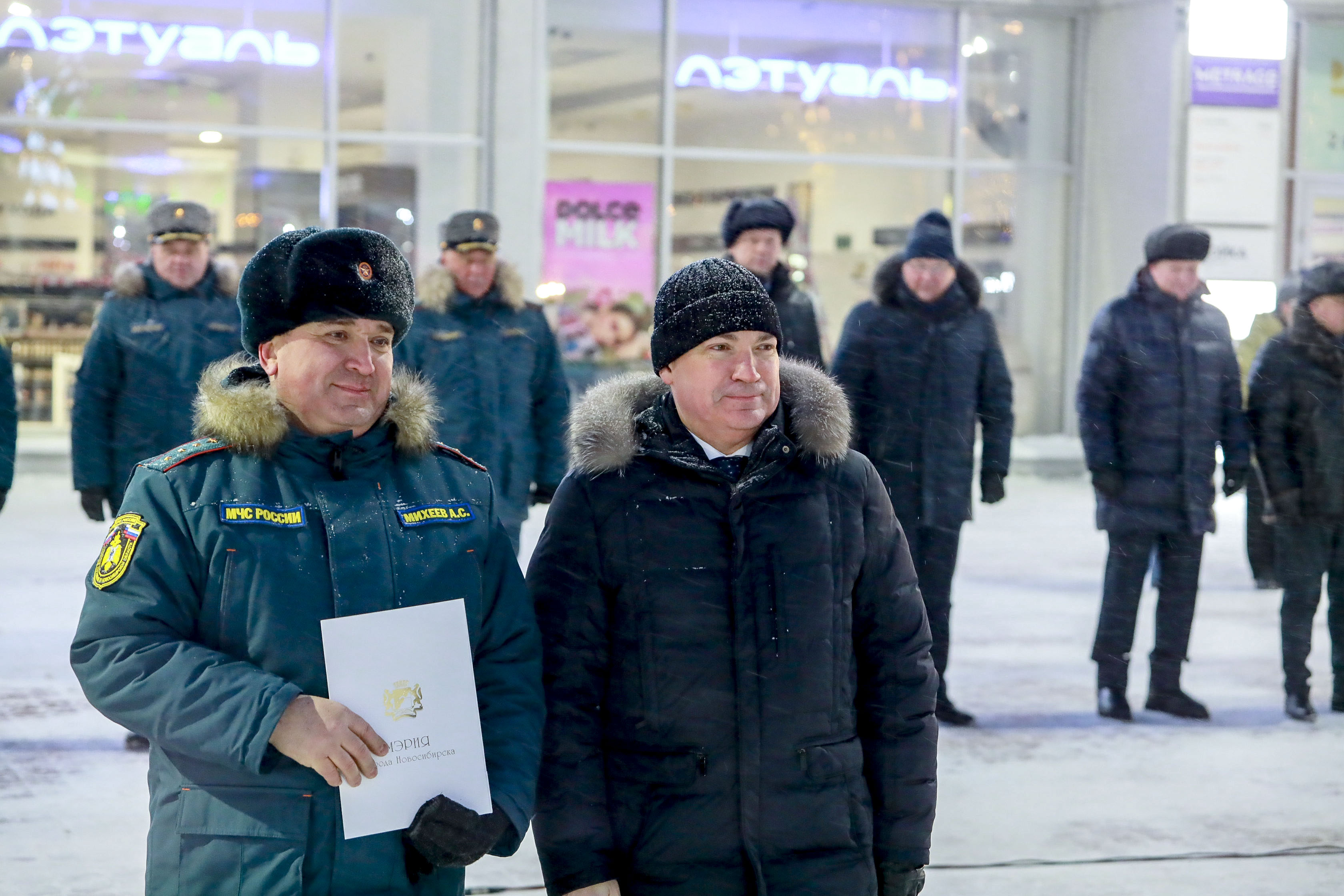 27 декабря, в день 35-летия со дня основания МЧС России, глава Новосибирска Максим Кудрявцев принял участие в торжественном построении спасателей на площади Ленина.