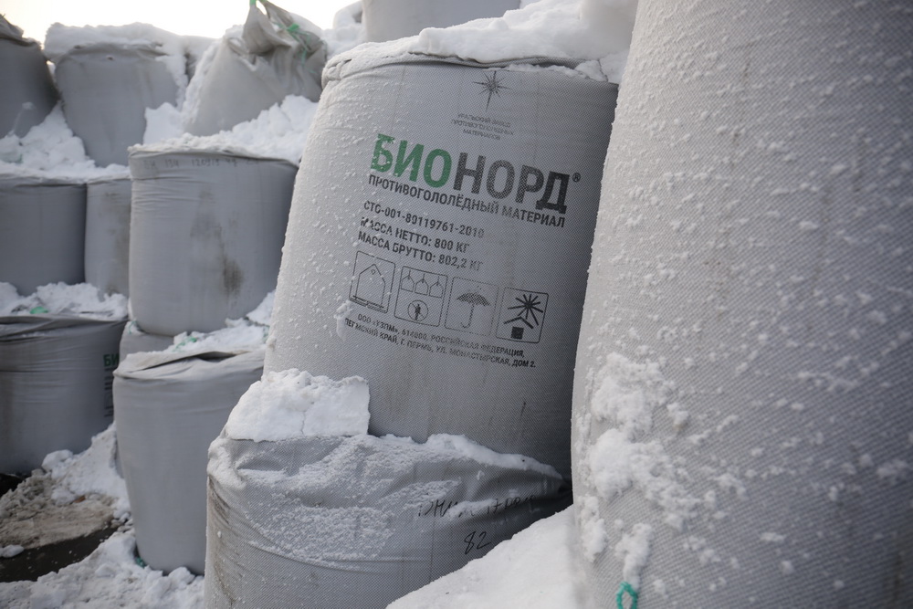 Мы отказались от использования мелкого речного песка и даже карьерного по причине образования пыли. Мы используем реагент «Бионород» на проезжей части. Эксперименты закончились, уже отработаны технологии, вся спецтехника работает при условии заправки «Бионордом».
