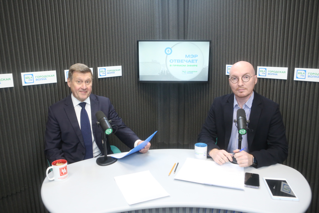 Вопрос от слушателя: «Как приятно, что вы такой открытый градоначальник, нигде таких не видел, повезло сибирякам. Идя по улицам, здороваетесь с горожанами за руку. В Сочи я не привык, что дороги посыпают песком, понятно, что нельзя не посыпать, но, может, есть другие способы, современные реагенты?»