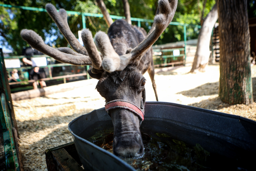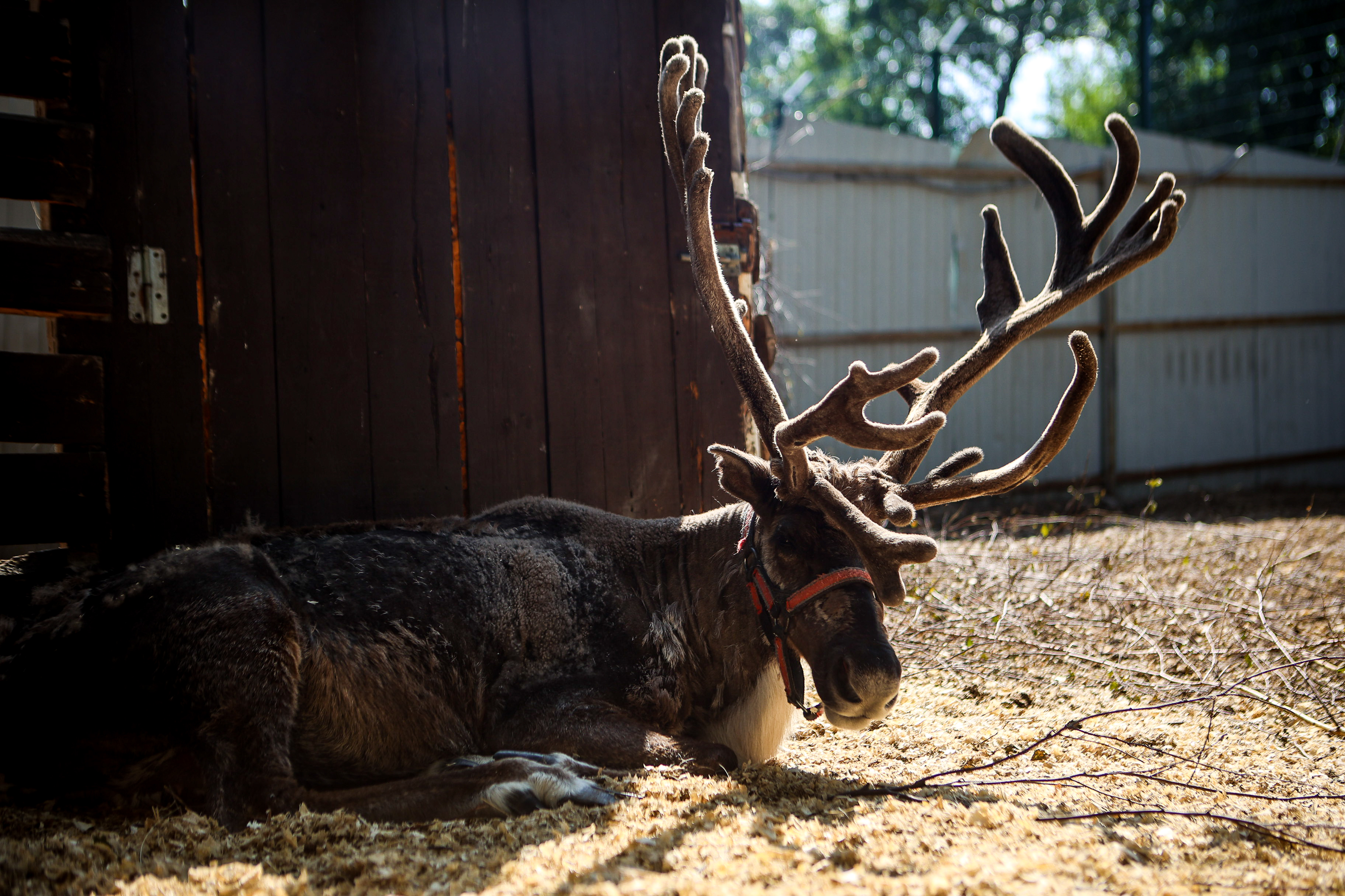 «Чем старше становятся, тем больше рога вырастают. Самцы обзаводятся ими раньше, самочки — после того, как оленят рожают, для защиты. Ещё это зависит от правильного питания, поэтому мы не разрешаем оленям есть овощи, можно только ягель», — говорит директор.