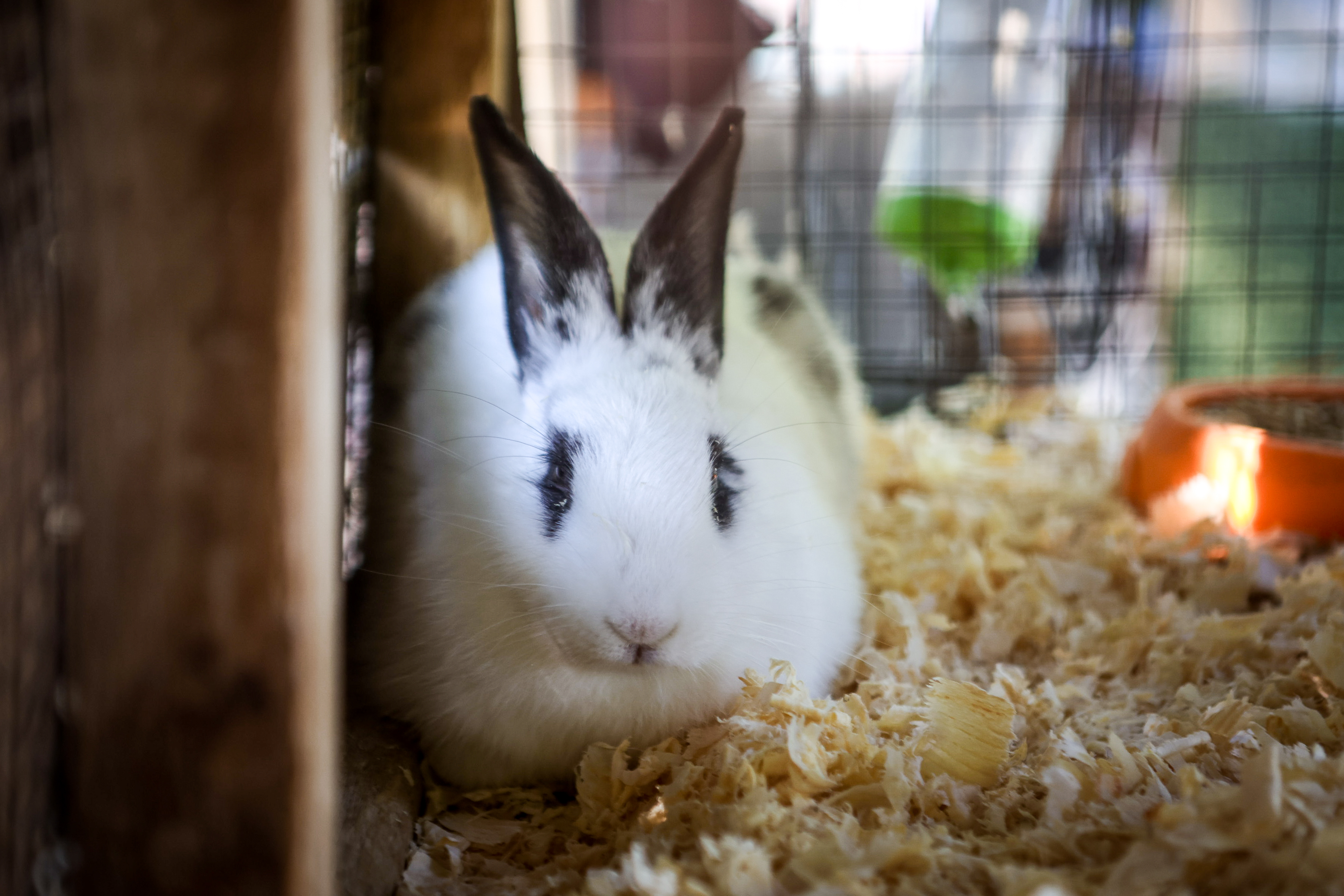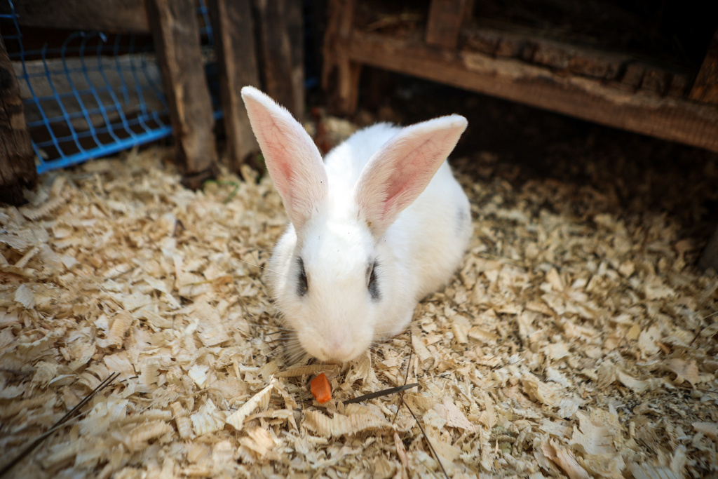 Кролик Бантик — такое имя зайчик получил из-за красивых ушек. Это зверь, который гуляет сам по себе. В укрытии сидит только в жару: прячется от солнца в тени и жуёт лакомство.