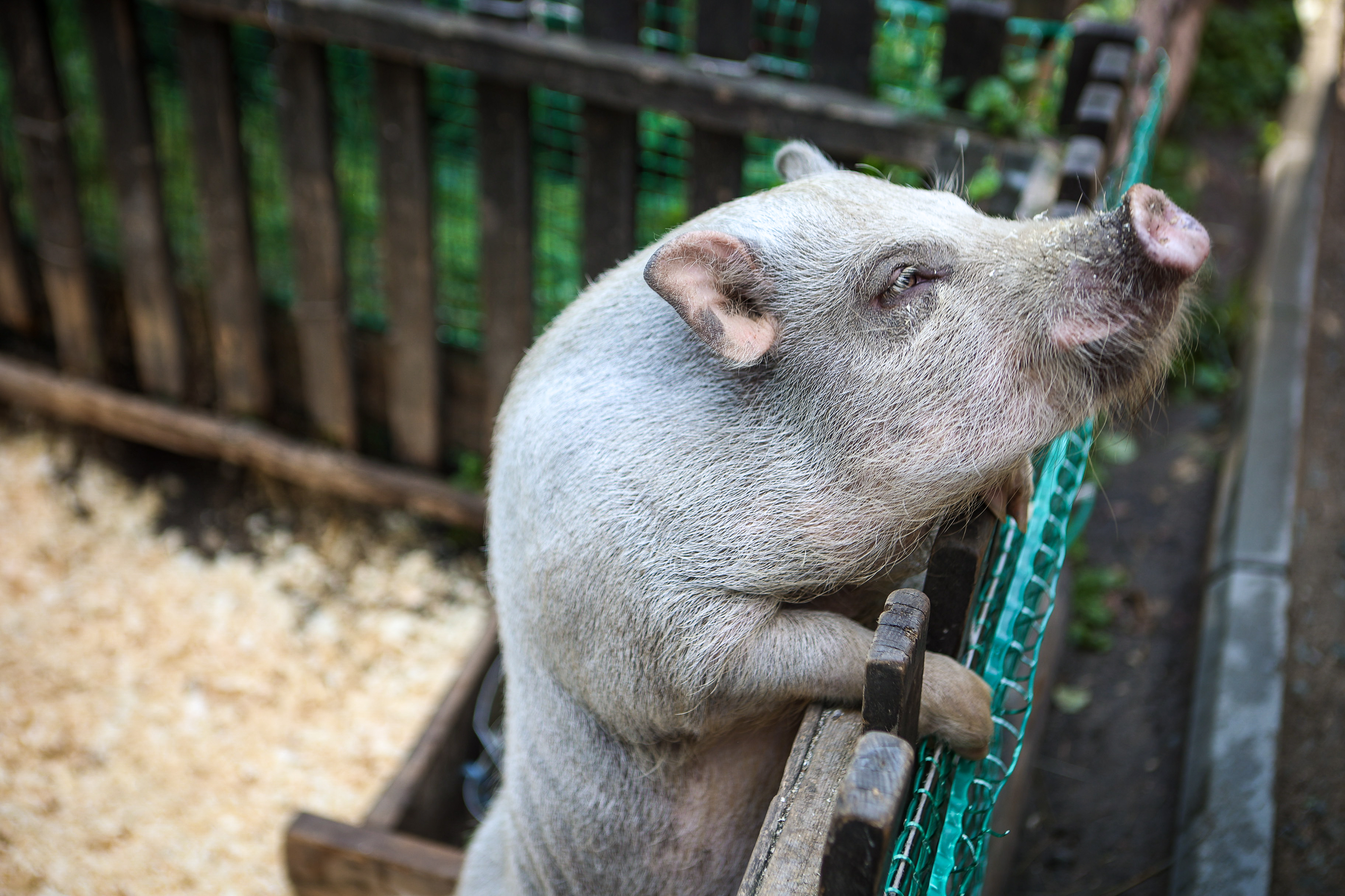 Поросёнка привезли в Новосибирск из Москвы, самочка приехала из Санкт-Петербурга. Это очень умные животные, их уровень интеллекта такой же, как у овчарки. При желании карликовых свинок можно даже научить выполнять разные команды.