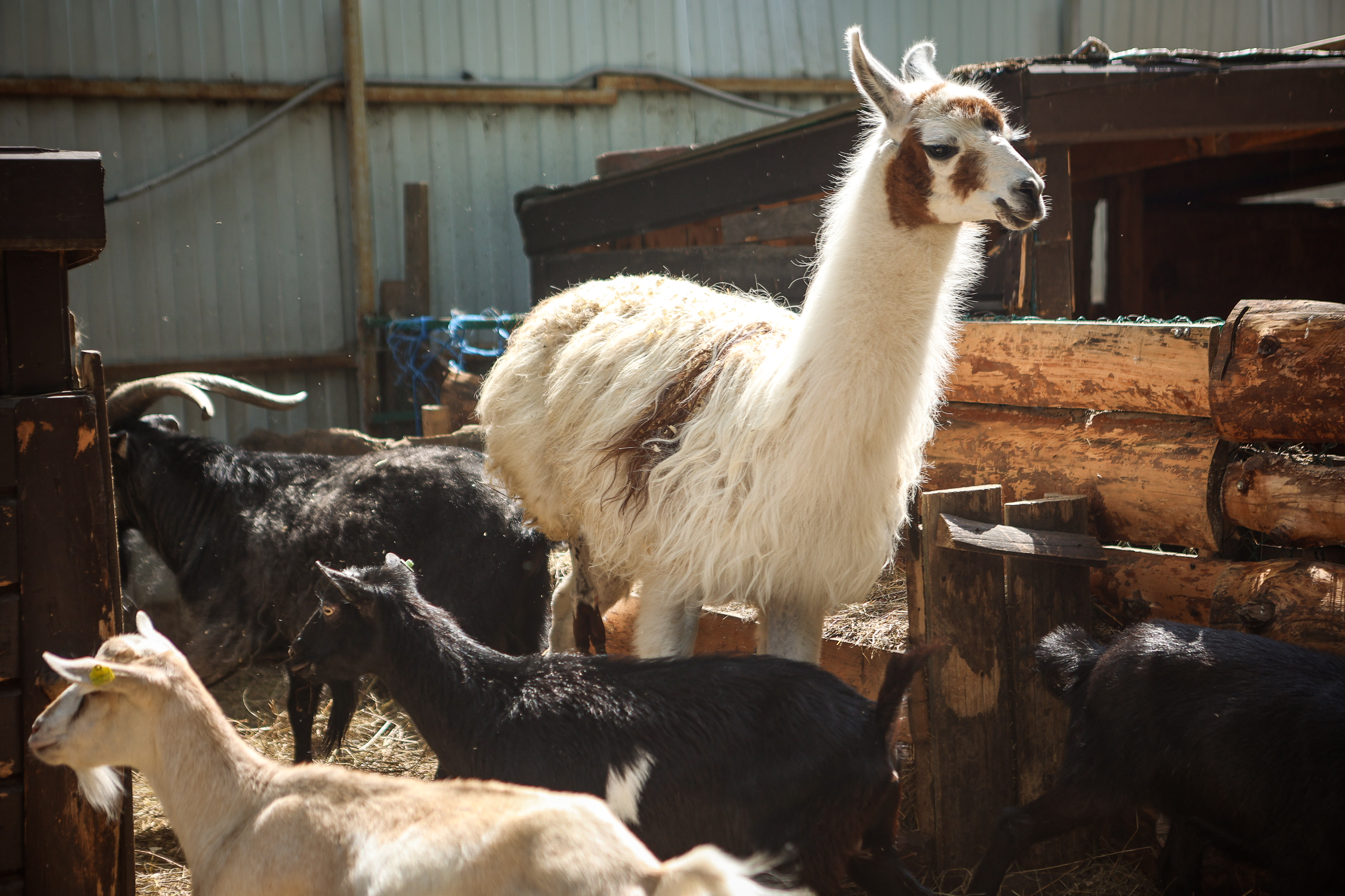 Лама по кличке Купидон. В Новосибирск этот полуторагодовалый красавец приехал из Московской области, где жил в конном клубе. Улыбчивый, но своенравный парень, чтобы упросить его попозировать на камеру, пришлось потрудиться.