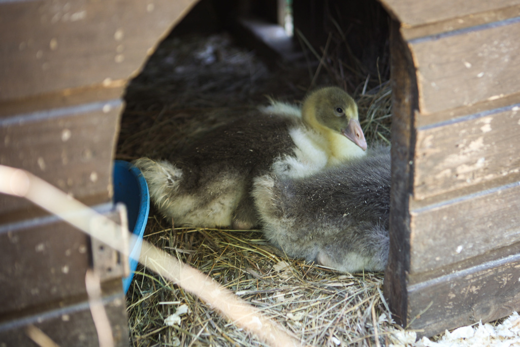 Маленьких гусят в контактном зоопарке прячут под сеткой. С недавних пор сюда повадились прилетать коршуны — наглые пернатые воруют беззащитных птенцов, не боясь людей.