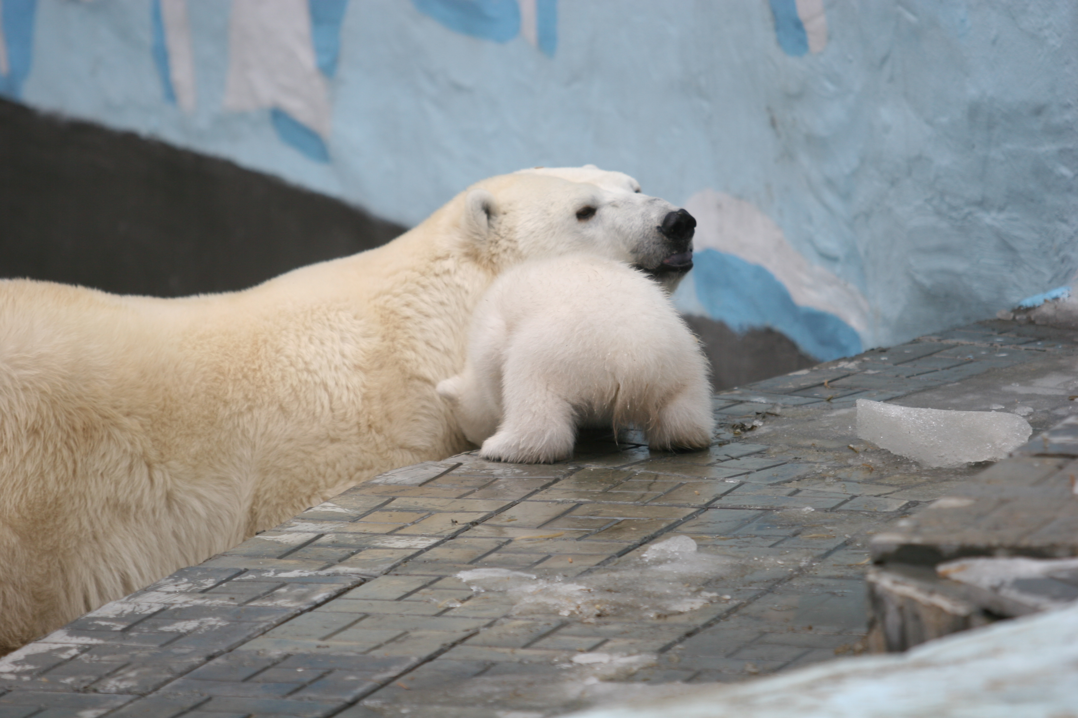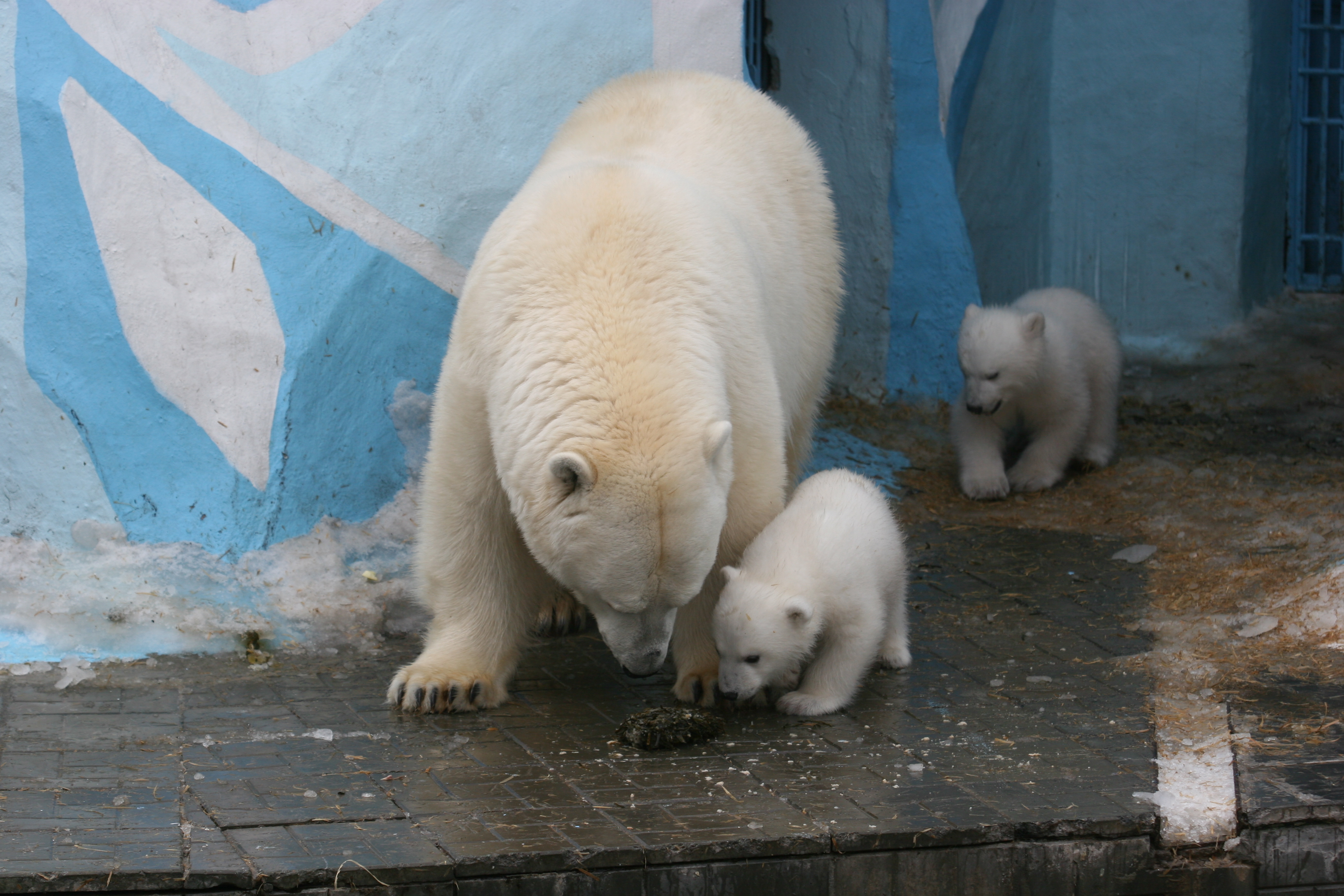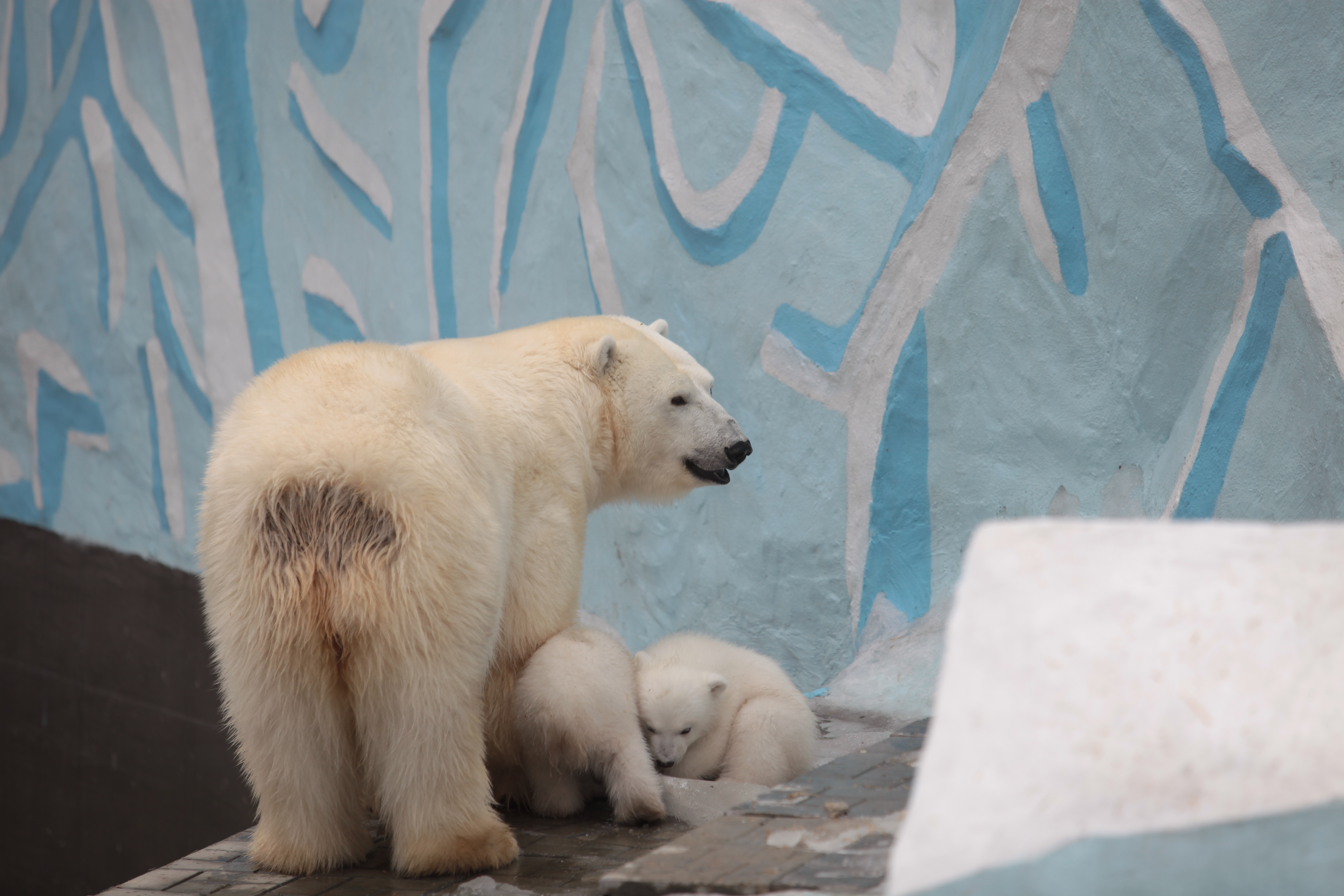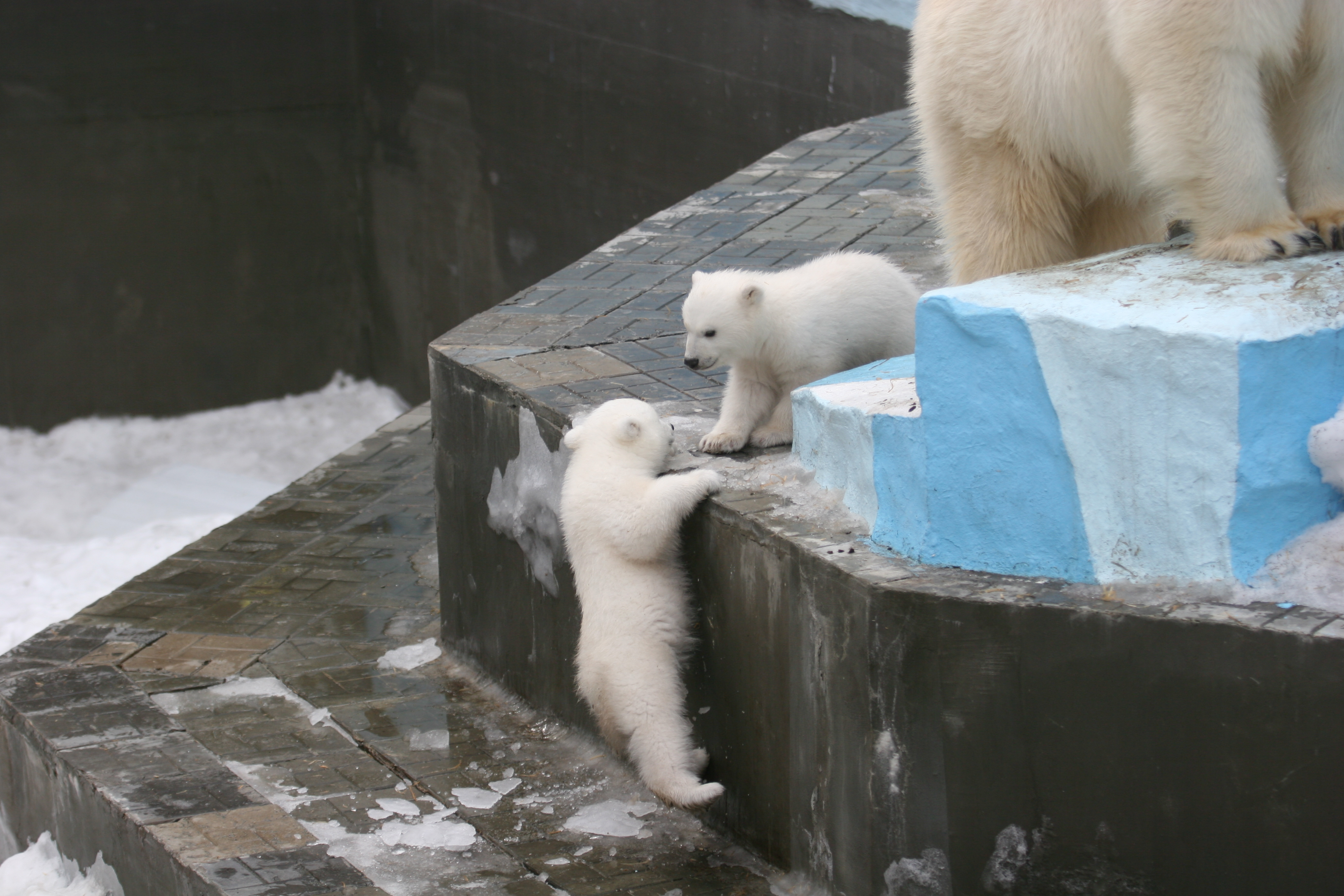 Приходите смотреть на белых медвежат, пока они не подросли! А увеличиваются в размерах они очень быстро: если сейчас они примерно десятикилограммовые, то к году их вес достигнет 80 кг. В дикой природе полярные медведи в этом возрасте уже умеют охотиться на тюленей.