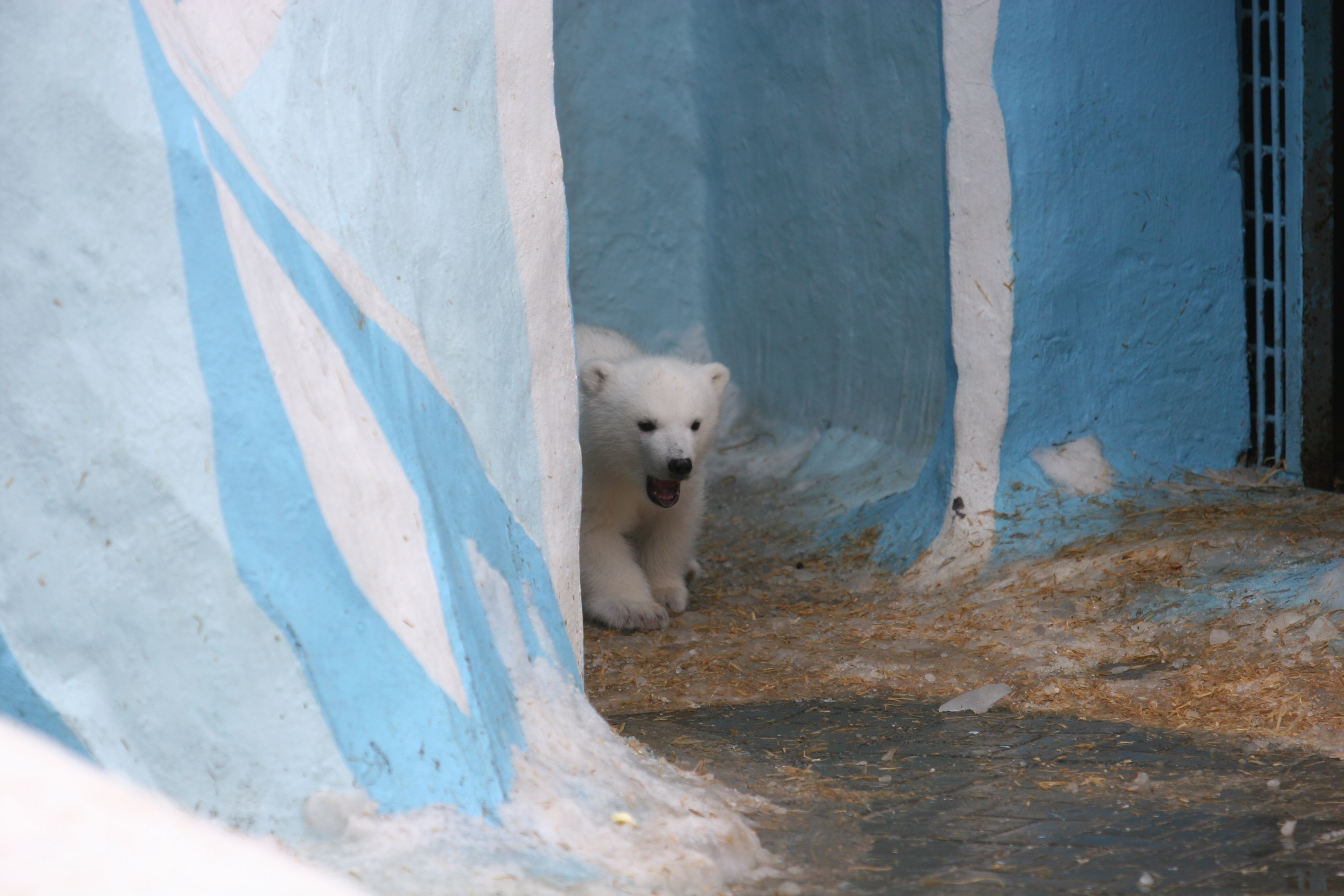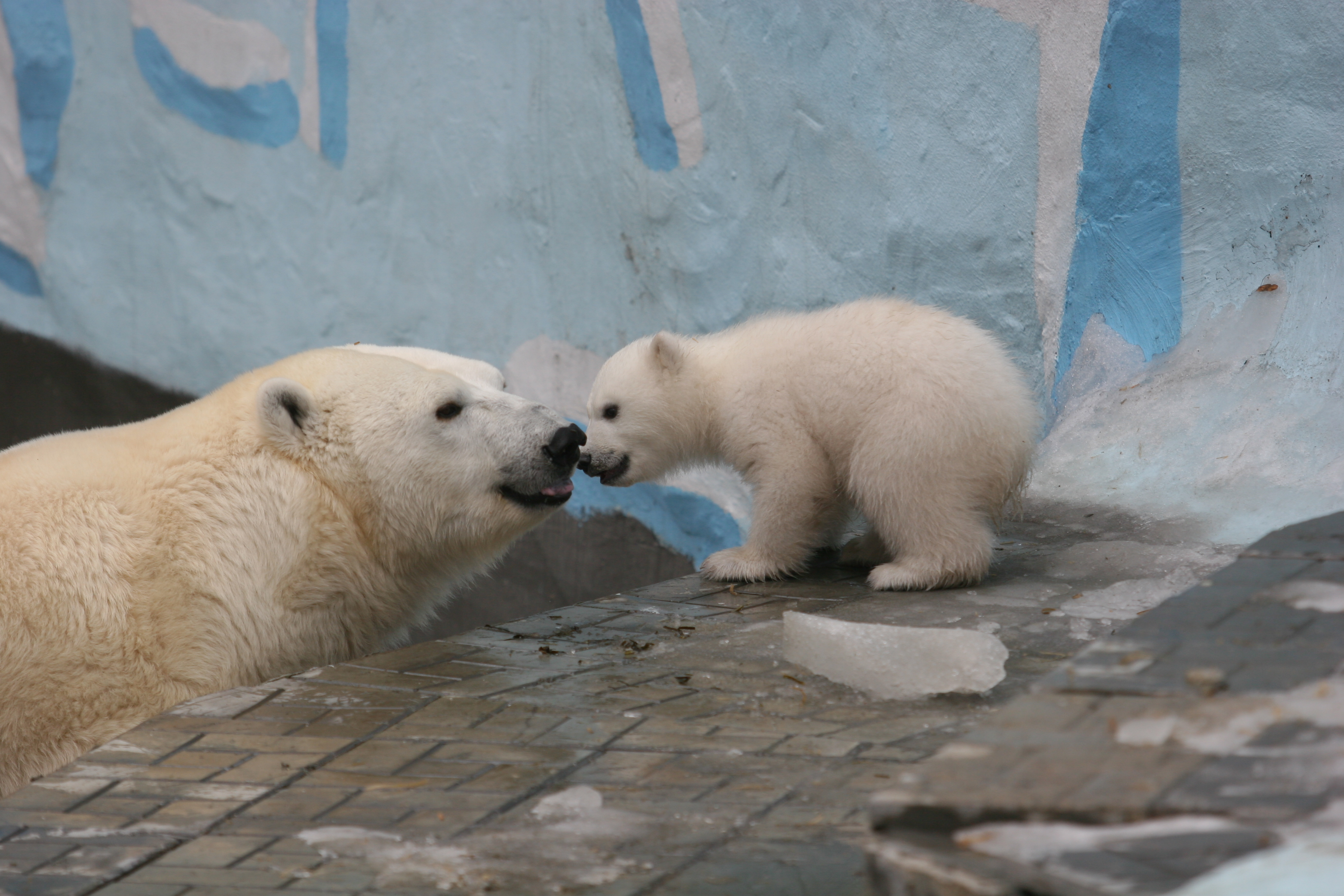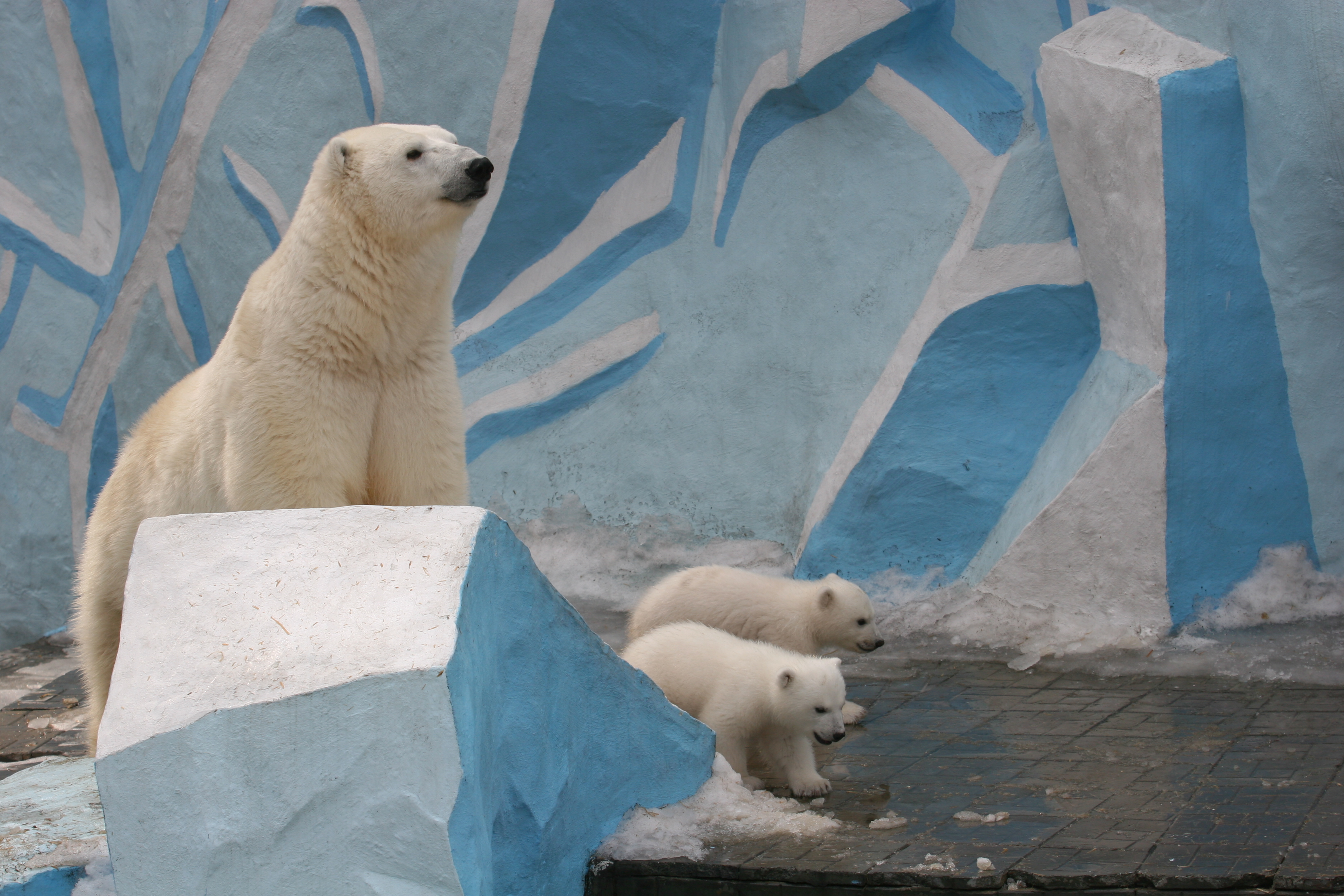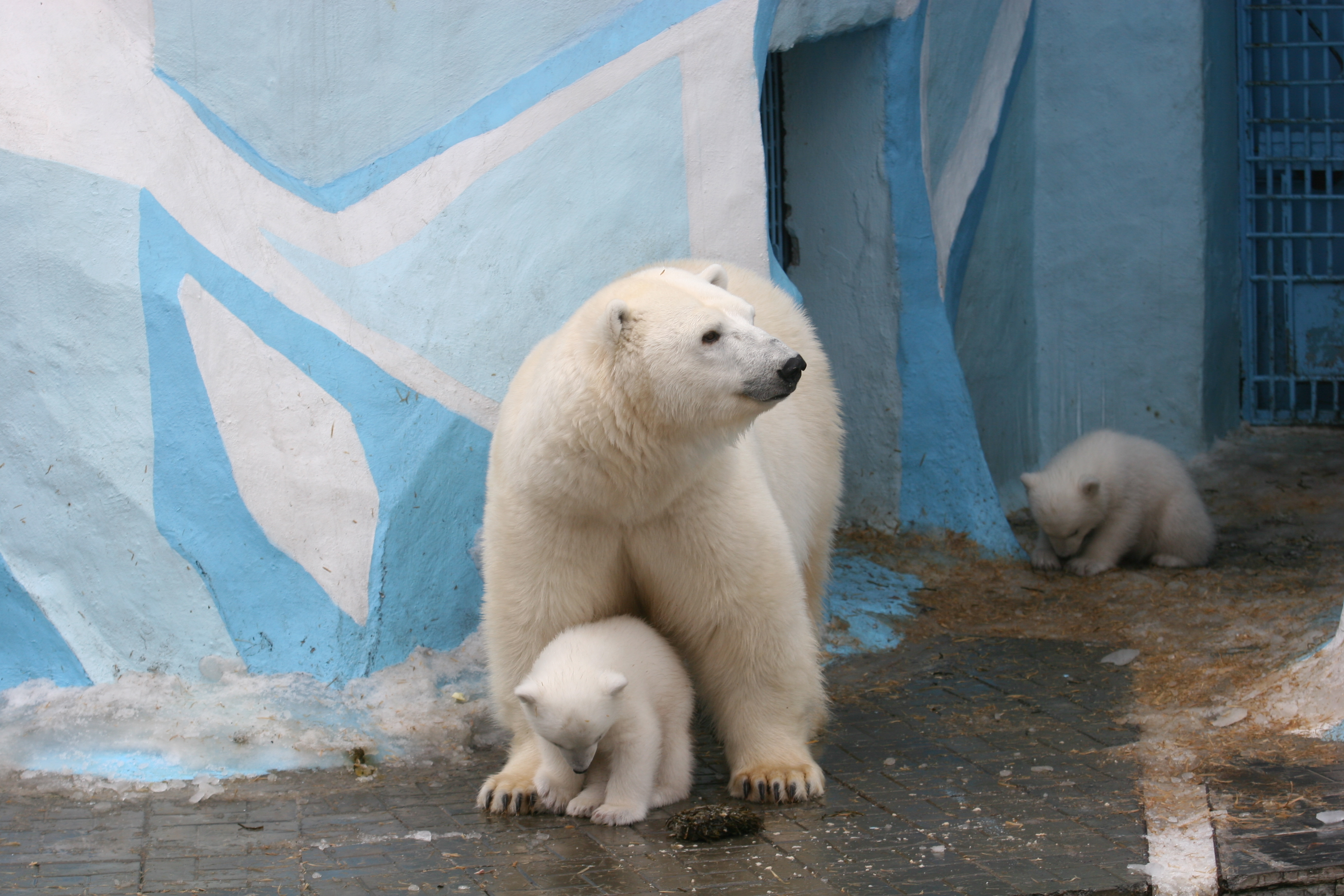 Приходите смотреть на белых медвежат, пока они не подросли! А увеличиваются в размерах они очень быстро: если сейчас они примерно десятикилограммовые, то к году их вес достигнет 80 кг. В дикой природе полярные медведи в этом возрасте уже умеют охотиться на тюленей.