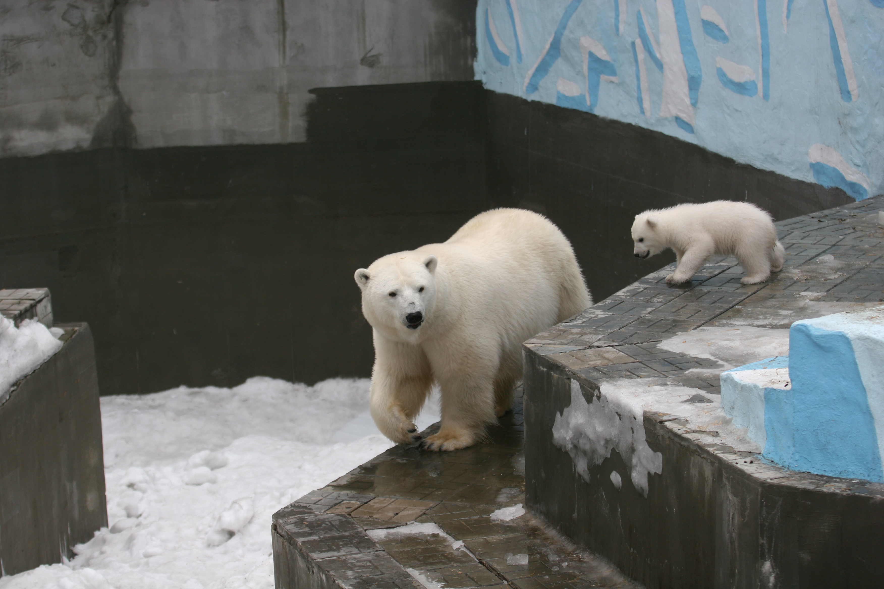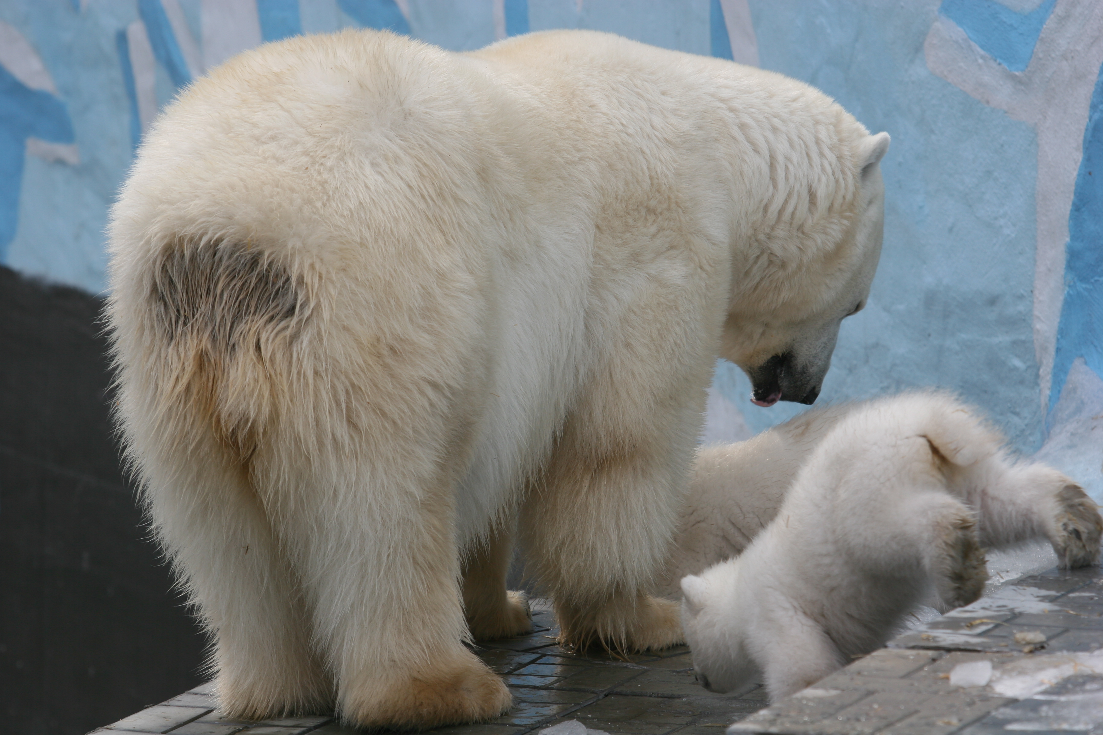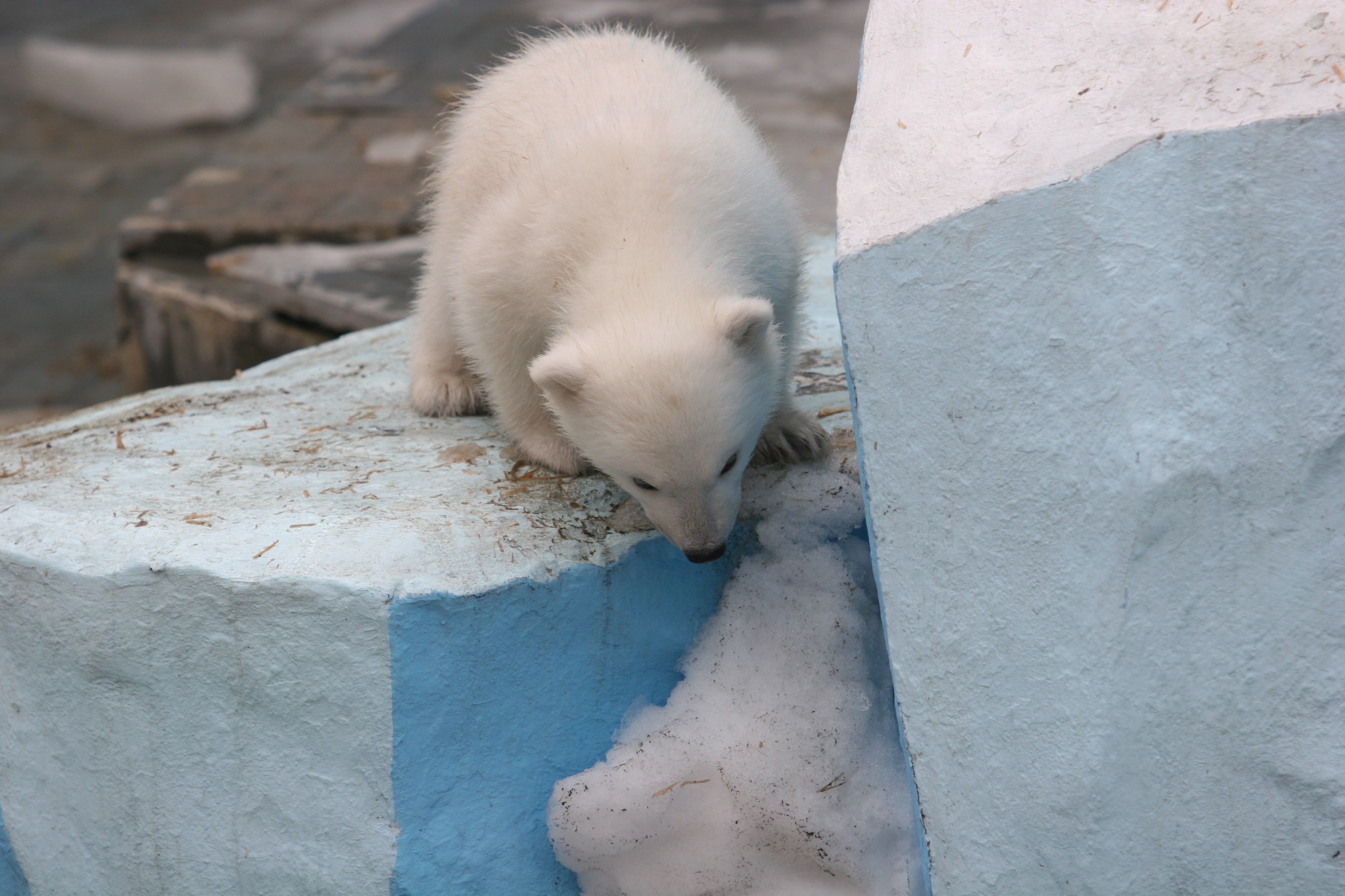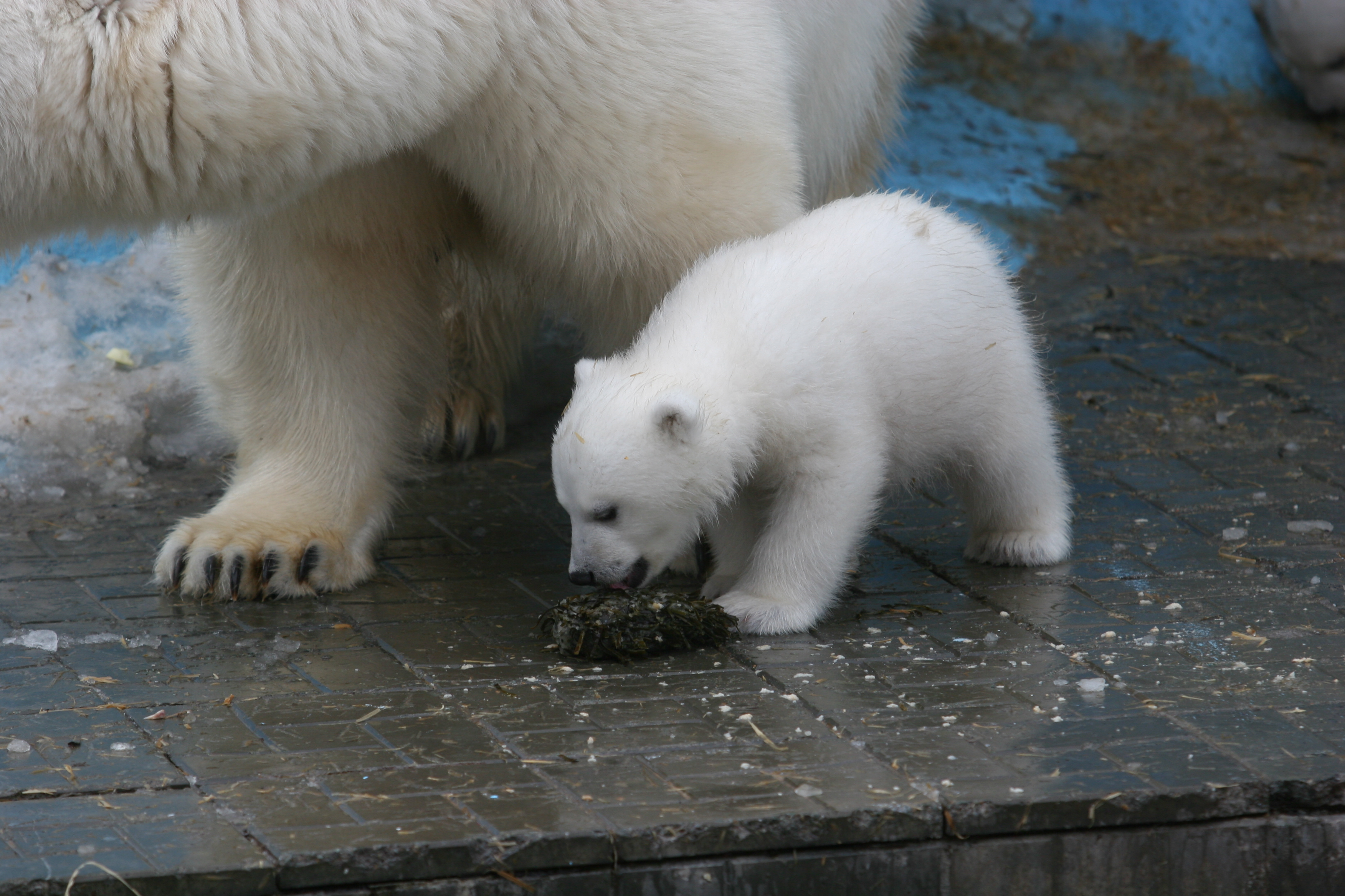 Приходите смотреть на белых медвежат, пока они не подросли! А увеличиваются в размерах они очень быстро: если сейчас они примерно десятикилограммовые, то к году их вес достигнет 80 кг. В дикой природе полярные медведи в этом возрасте уже умеют охотиться на тюленей.
