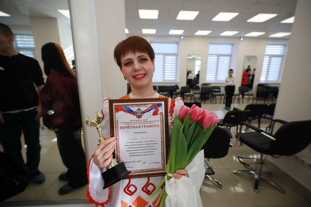 Участница добровольной народной дружины «Кировка» Ольга Ануфриева завоевала титул «Мисс Весна — 2026». Творческий конкурс устраивают для защитниц общественного порядка. В этот день они меняют строгую форму на праздничные наряды для дефиле.