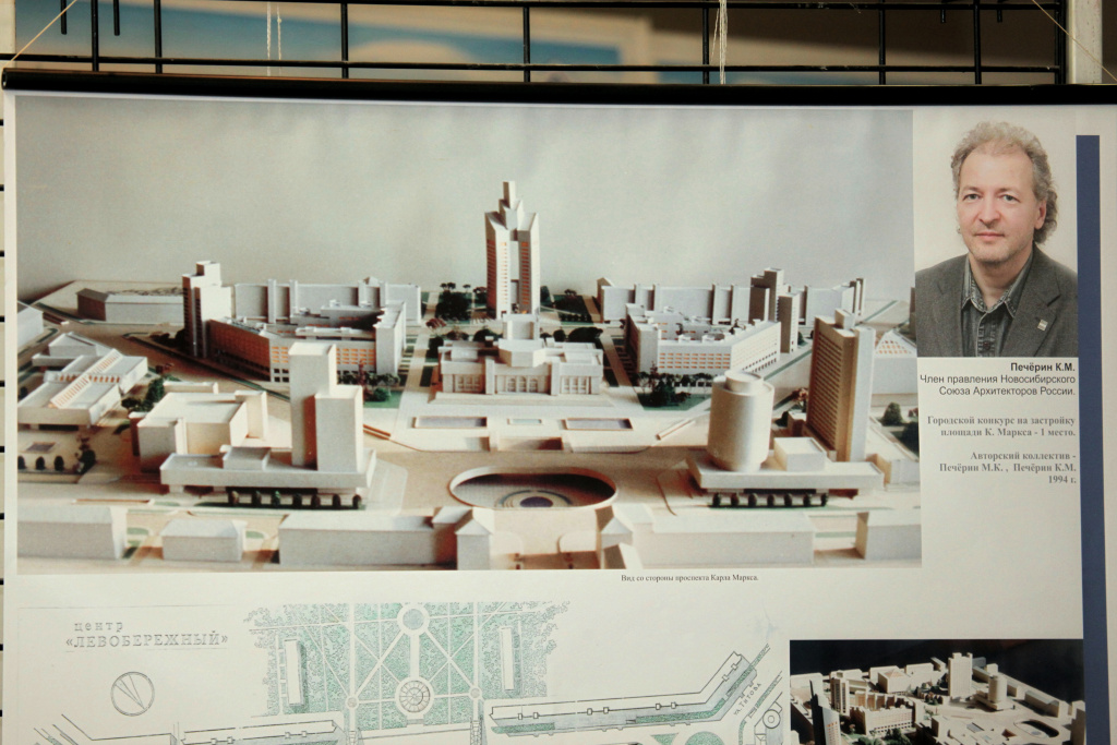 В 1994 году мэрия объявила конкурс на лучший проект комплексной застройки площади Маркса. Победила работа Михаила и Константина Печёриных «Центр „Левобережный“». Их мастерская находилась на верхнем этаже дома на Титова, 1, построенного по проекту Михаила Печёрина. Разработчикам было видно всю площадь из окна. В 1998–1999 годах архитектор Николай Казаков внёс в проект корректировки. Реализовать задуманное, увы, так и не вышло.