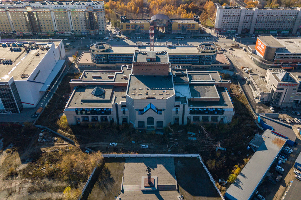В 1990-х годах территорию вокруг недостроенного ДК заняла барахолка. Собственник этого вещевого рынка в 1995 году купил здание на торгах, планируя завершить его в 2004-м. В 1997-м строительство объекта возобновили по новому проекту. Но грянул кризис, и всё опять встало.
