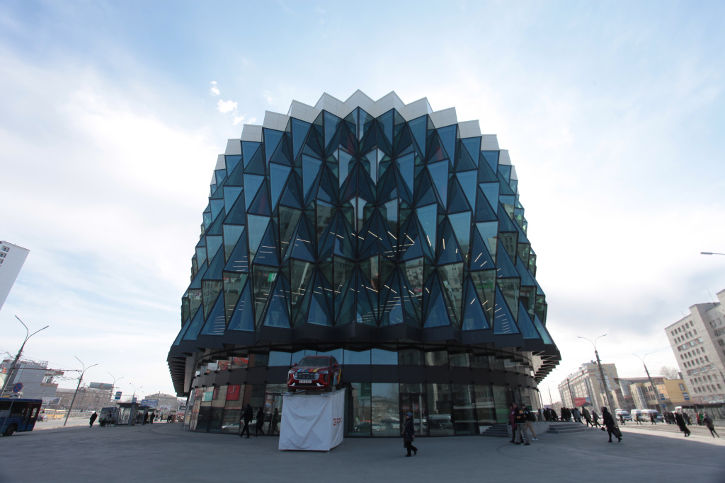 Летом 2023 года на участке со стороны улицы Титова ввели в эксплуатацию ТЦ «Грани». Это здание стало самым эффектным на площади Маркса: ребристый фасад собрали из огромных стеклянных треугольников. 3D-витраж спроектировали и изготовили в новосибирской компании «Несущие системы», которую знают во всём мире. Торговый центр соединили со станцией метро с помощью 27-метрового подземного перехода. Строительство совпало с пандемией и введением санкций, поэтому сроки открытия несколько сдвинули. В ноябре 2022 года здание красиво подсветили изнутри.