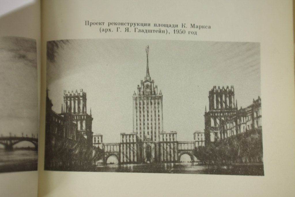 В 1950-х годах архитекторы создали несколько проектов монументальных зданий для левого берега. На площади Маркса могла вырасти настоящая сталинская высотка — 21-этажная библиотека. Автор идеи — Евгений Щербинин.