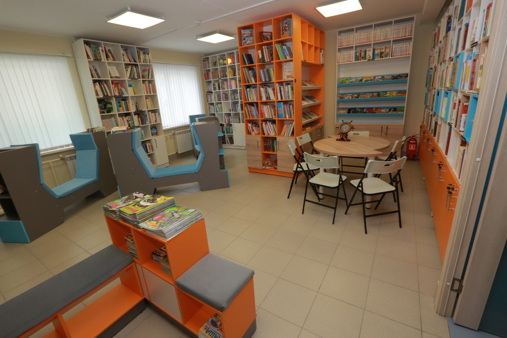Здесь сделали ремонт, изменили концепцию и настроились на более современный подход к читателям. Книги можно почитать здесь же — на диванчиках в виде кораблей. А в импровизированном кинозале познакомят с историей микрорайона.