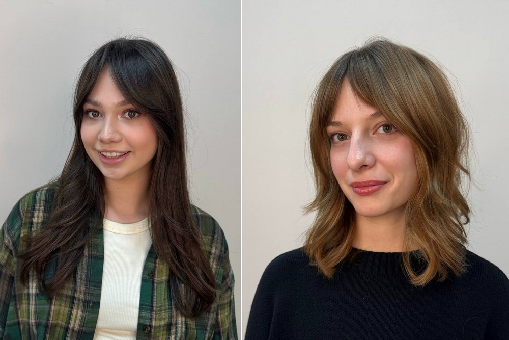 «Самая популярная — французская чёлка-каскад. Её отличают умеренная густота и непринуждённая форма, плавно перетекающая в основную стрижку. У лица вырисовывается такой мягкий треугольник. Также есть запрос на негустую, очень подвижную лёгкую чёлку, как у Джейн Биркин. Именно с такой картинкой из Pinterest очень многие ко мне приходят», — сообщила Юлия Терентьева.