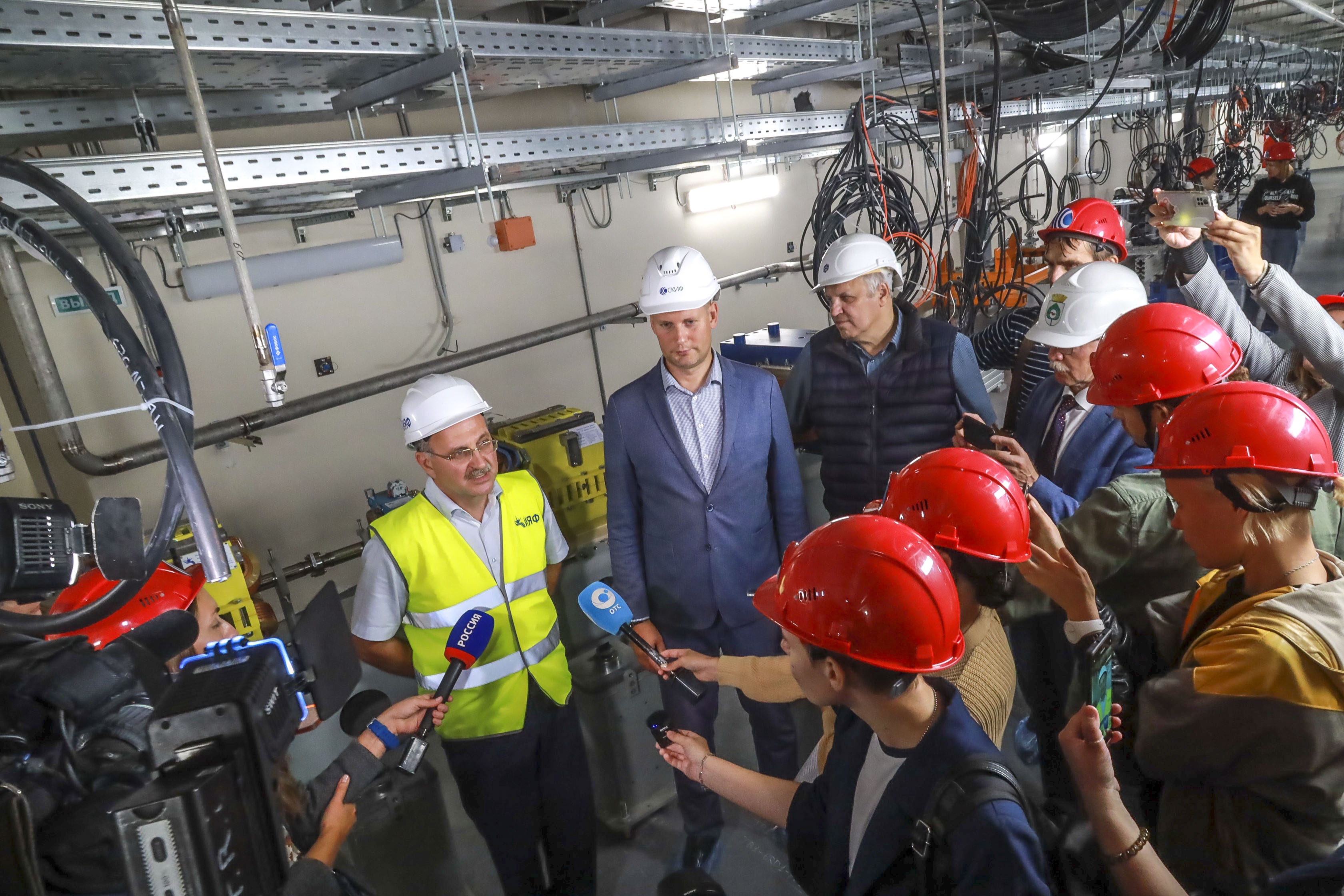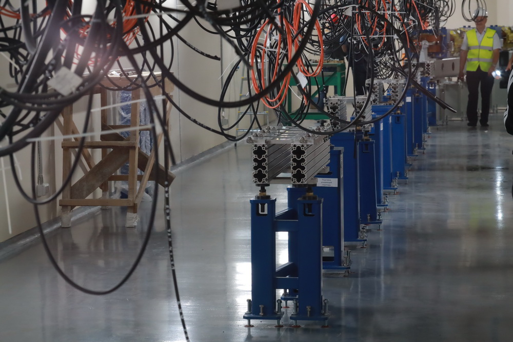 «Пока ребята выставляют тумбы, строители прокладывают кабель, чтобы можно было сразу подключить. Так что, надеюсь, через месяц вы уже собранный бустер увидите здесь. Выпуск пучка в этом месте происходит. И потом пучок через отверстие летит 200 метров, запускается в основное кольцо и там уже излучает синхротронное излучение», — рассказал помощник директора Института ядерной физики СО РАН по проекту «СКИФ» Сергей Гуров.