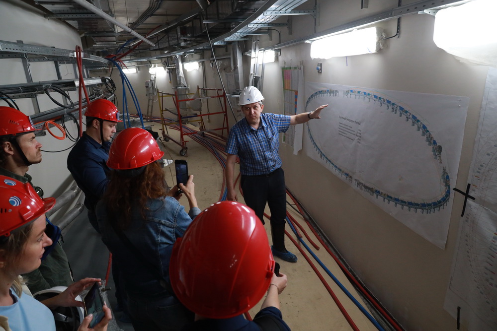 Это позволит приблизить начало работ с электронным пучком. Именно здесь его будут готовить к выходу в основное кольцо. Уже начали сборку магнитно-вакуумной системы, по ней пучки будут переходить в бустерный синхротрон. На пол нанесли разметку, чтобы каждый элемент оборудования стоял на нужном месте.