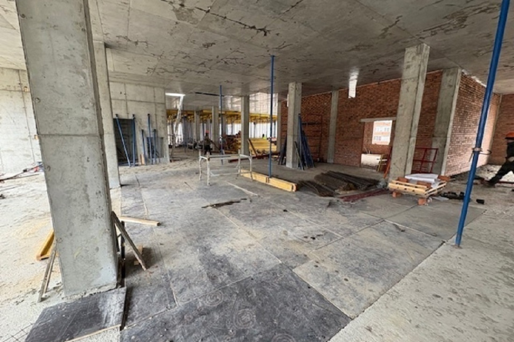 Как сообщили в городском департаменте строительства и архитектуры, бригады сооружают колонны и стены здания, внутренние кирпичные перегородки, монтируют фасад. Параллельно с территории выносят теплосети и кабельные линии.