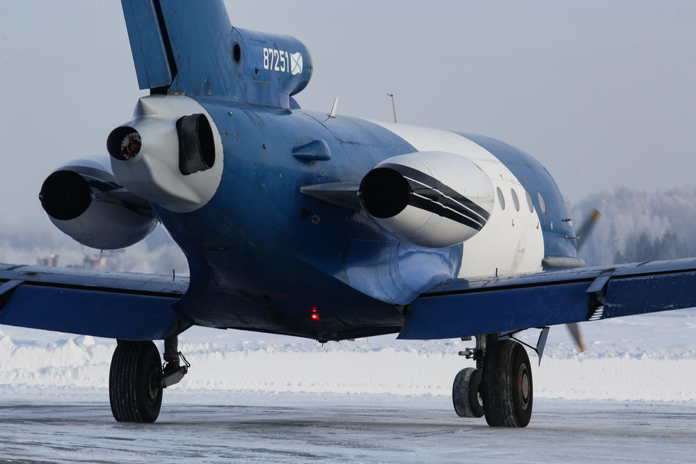 Летающая лаборатория Як-40 с новейшим электродвигателем пробежала по новосибирскому аэродрому. Обычные турбины крылатой машины при этом работали. Это один из этапов лётных испытаний.