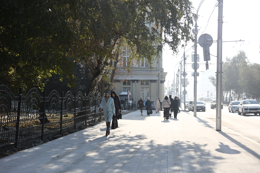 «На центральных улицах, таких как Орджоникидзе, Депутатской, Советской, а также на Красном проспекте уложили крупноформатную плитку из высокопрочного бетона с добавлением мраморной крошки. Такое покрытие более долговечно и лучше поддаётся ремонту», — подчеркнул Захаров.