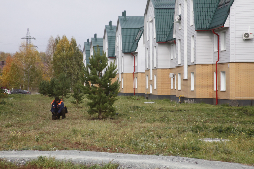 Вдоль дороги, идущей по южной границе застройки, посадили сосновую аллею. Это полевые сосны, кроны которых разрастаются шарами. Они подросли, расплодились по полю. Сейчас мы пересаживаем этих «детей» на территорию посёлка и вдоль перспективной дороги протяжённостью километр. Для этого купили специальный пересадчик.