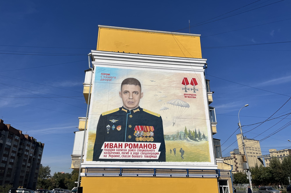 Огромный портрет погибшего в спецоперации на Украине Ивана Романова нанесли на стену дома №48 на улице Большевистской.