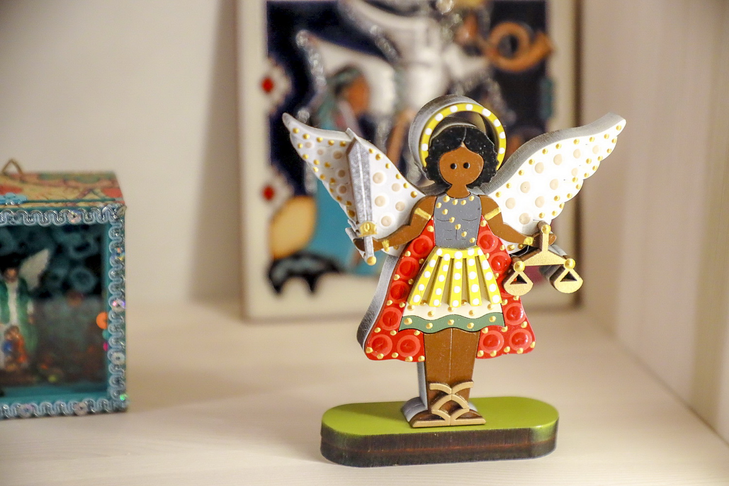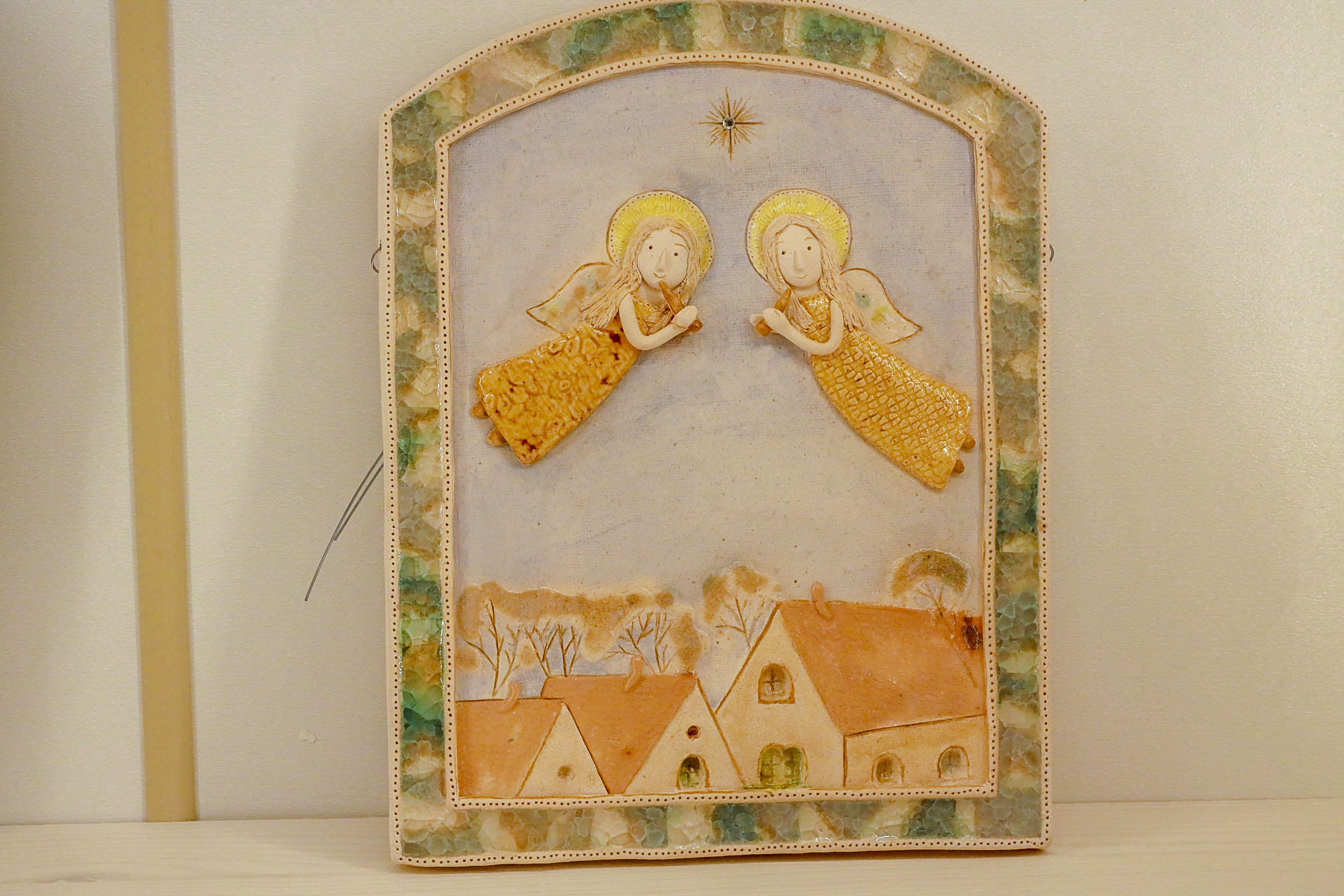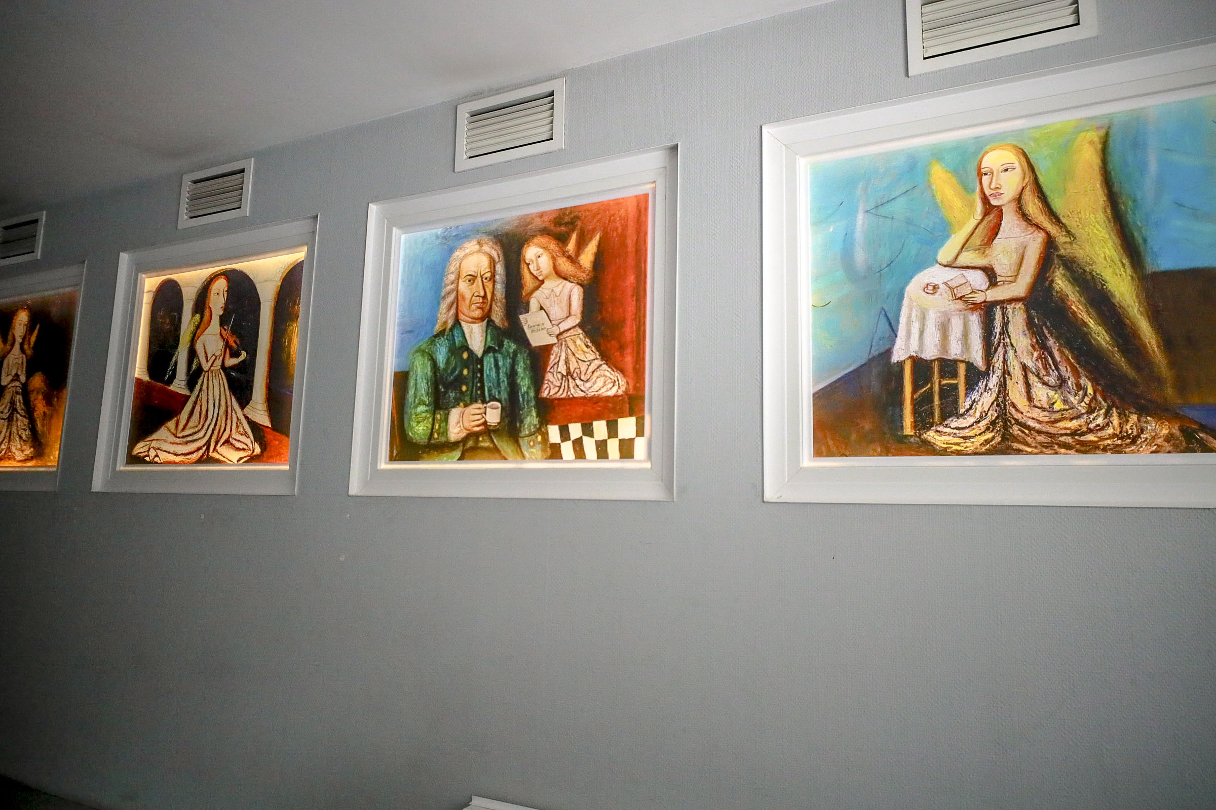 Одна из этих работ — «Золотой ангел» — сейчас находится на алтарной стене храма святого Христофора в Бристоле. Посетителям художественного пространства в Академгородке демонстрируют восемь других работ автора, среди них: «Ангел из города Н», «Ангел в декабре», «Ангел И. С. Баха», «Вечерний ангел».