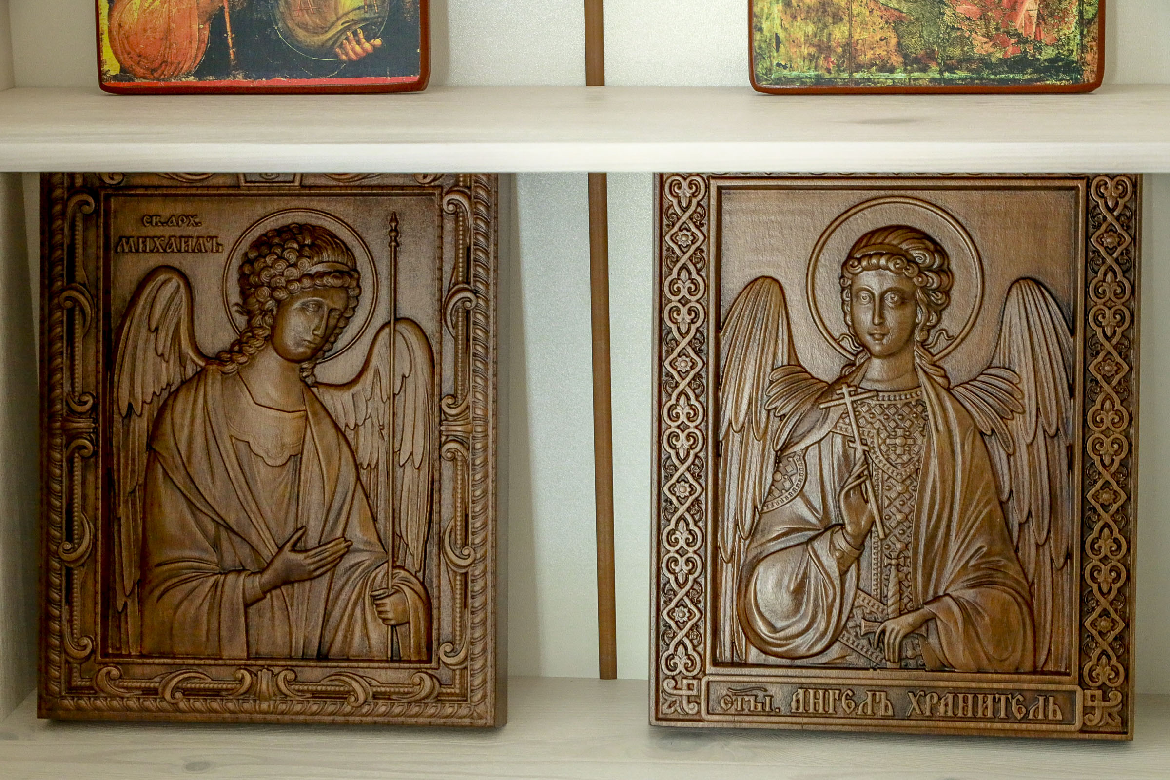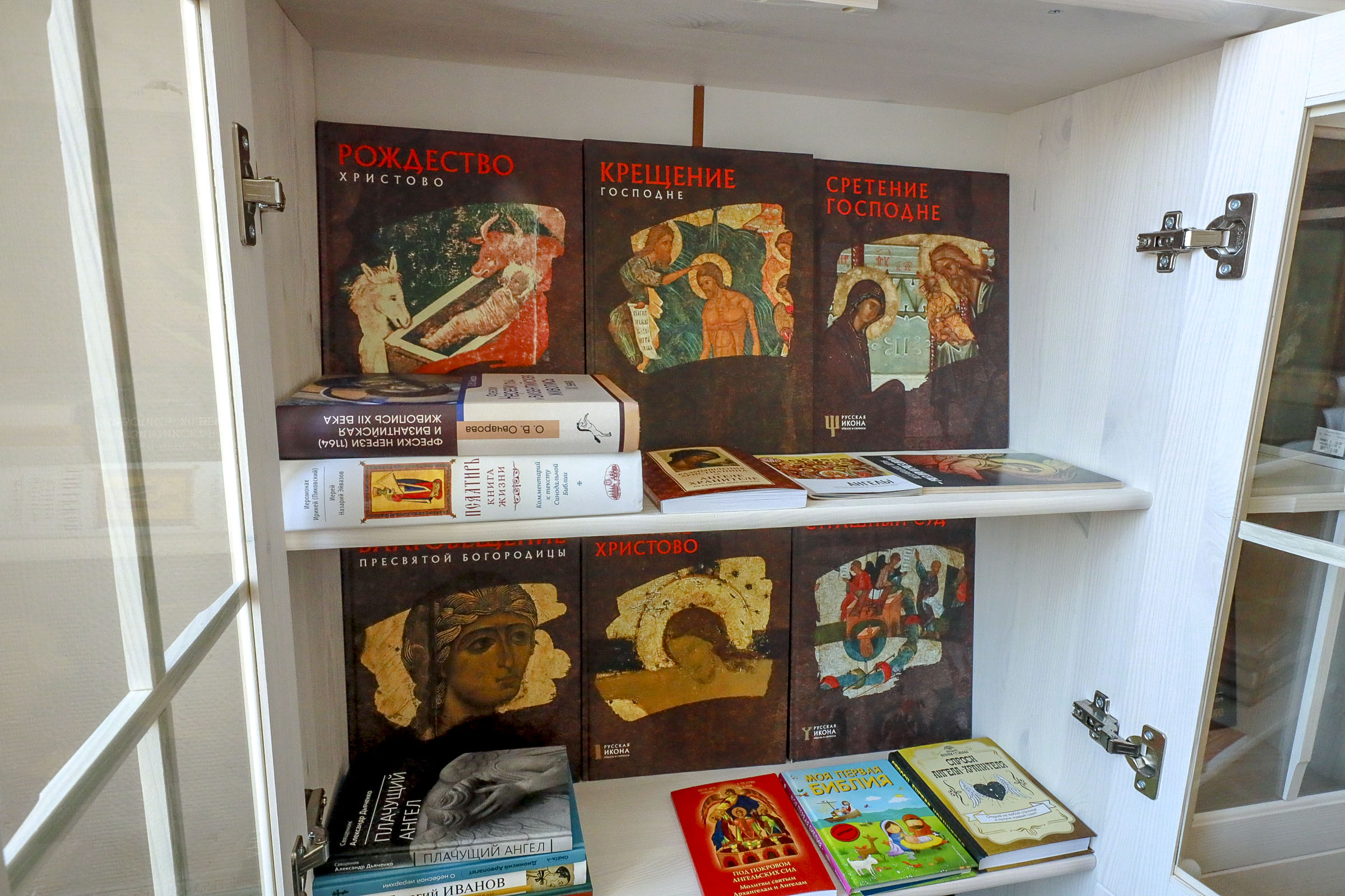 Постоянная часть выставки работает на втором этаже. В неё входит небольшая библиотека, где собраны альманахи, художественные альбомы, духовные книги про ангелов для взрослых и детей.