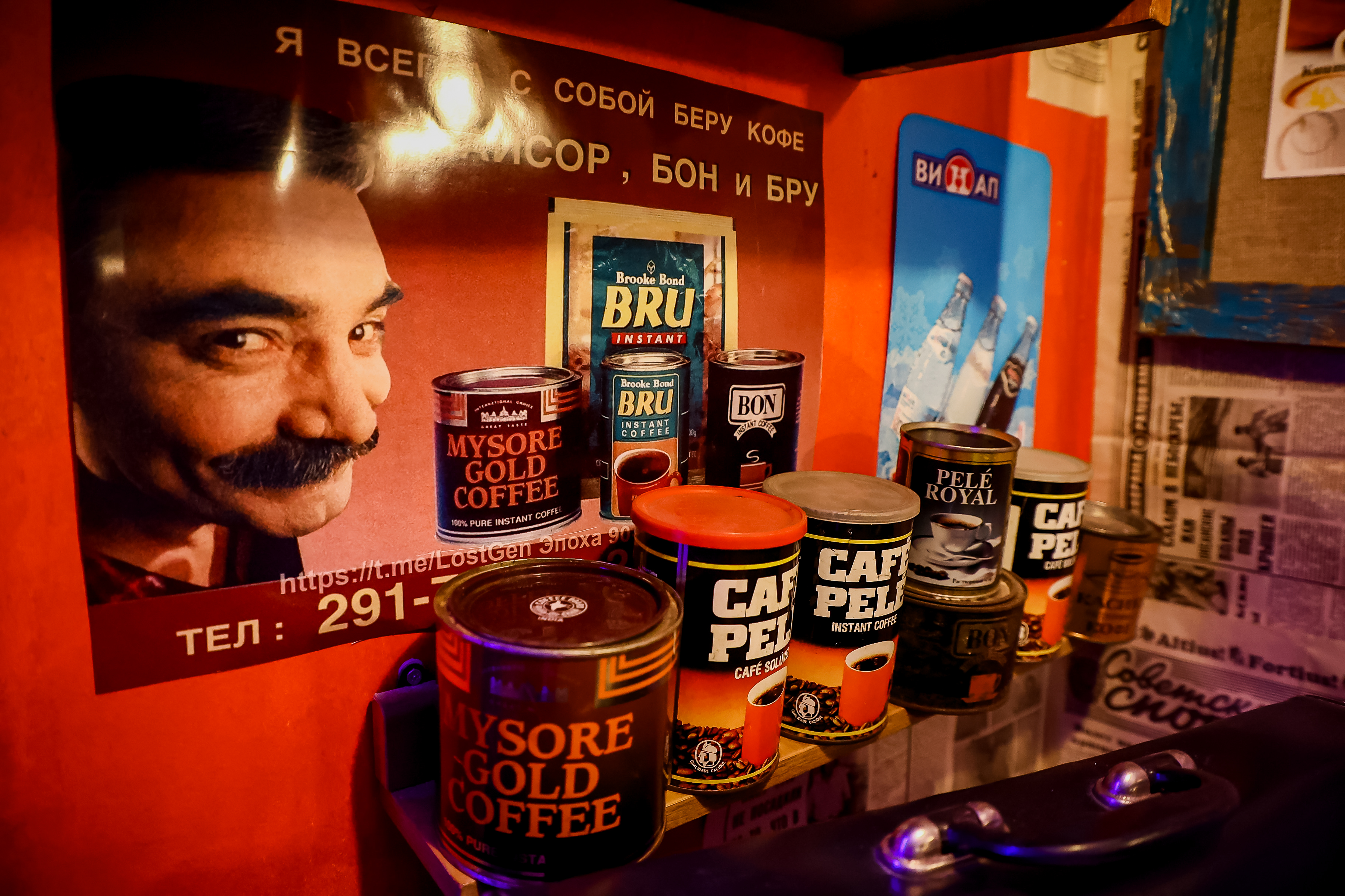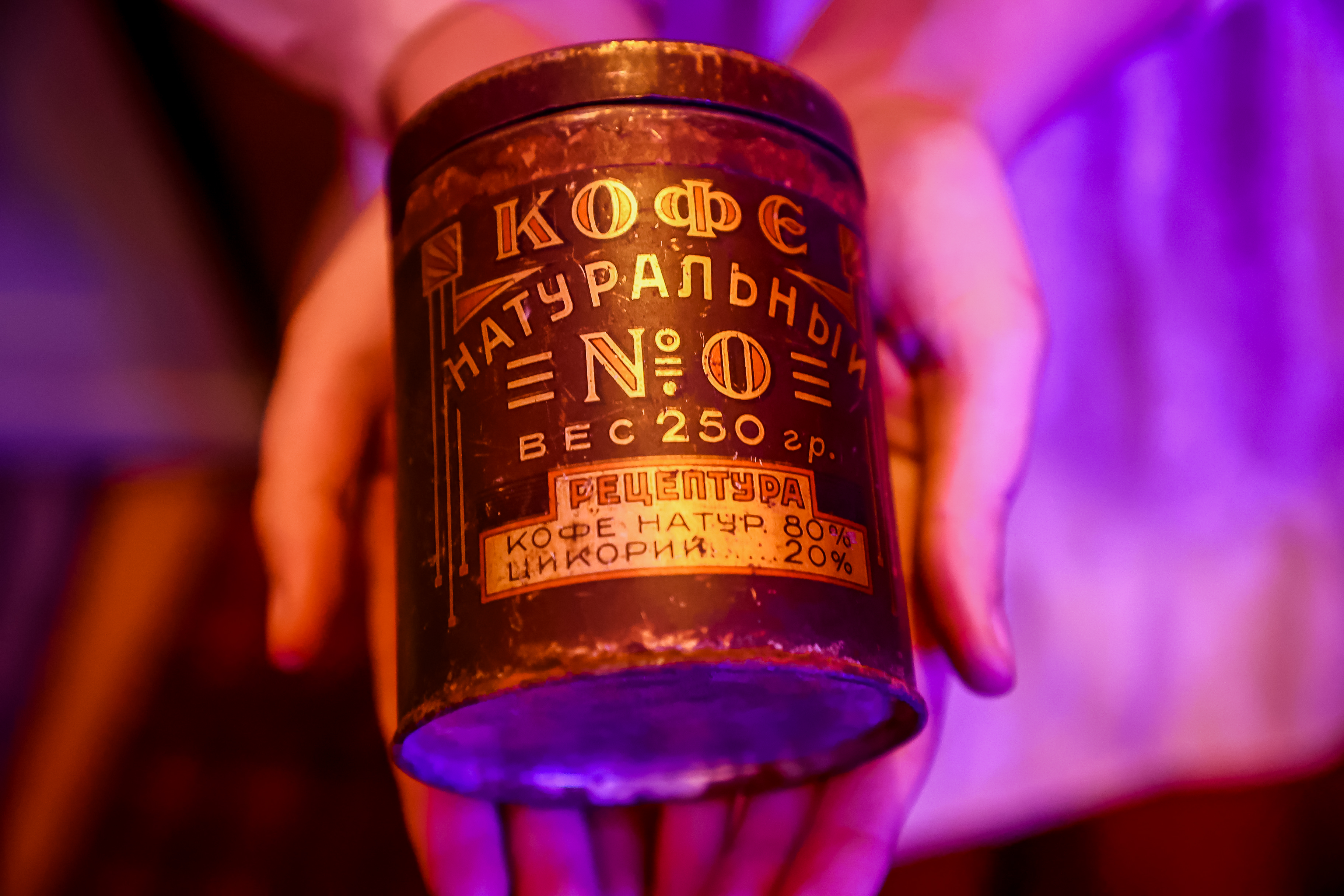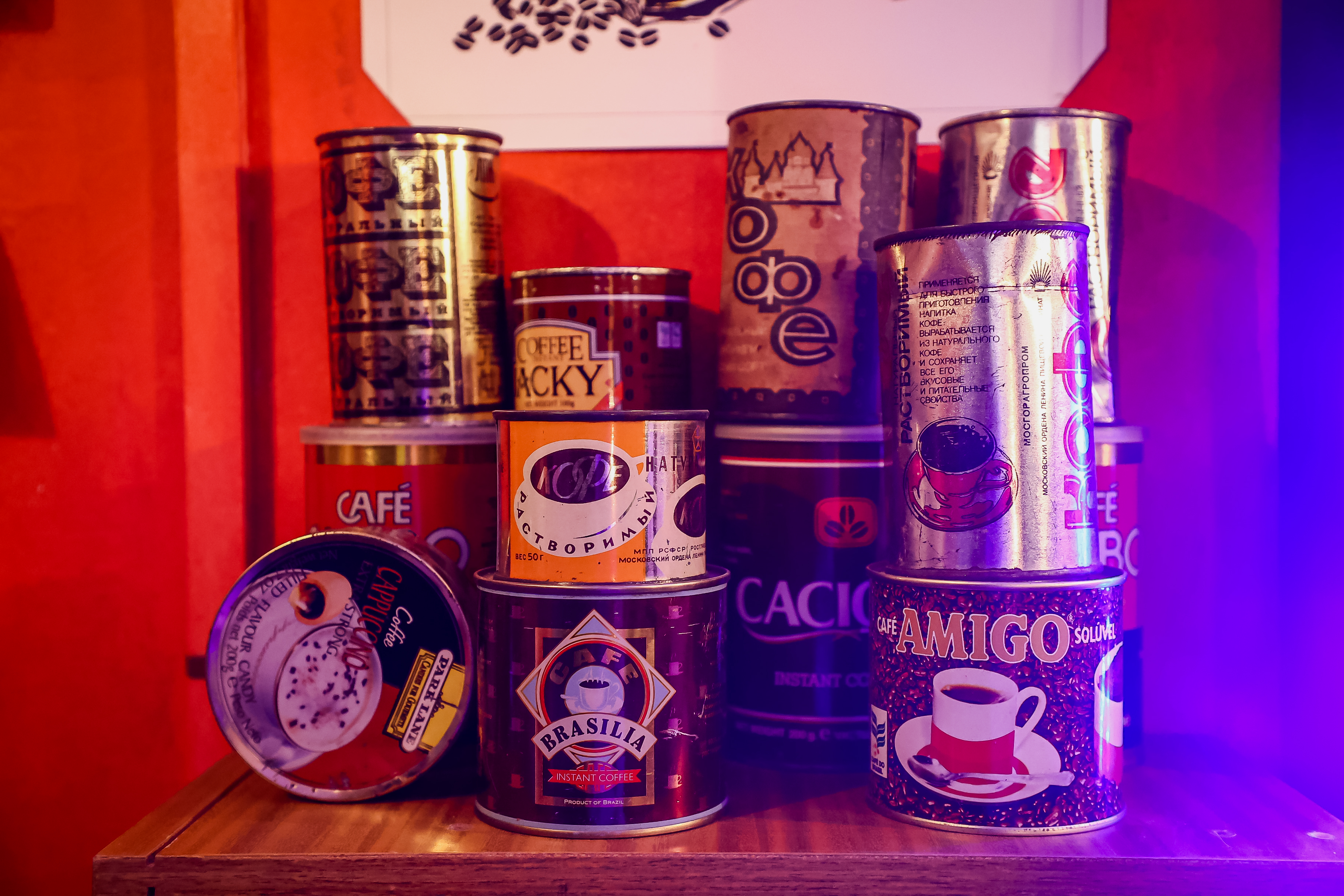 В музее собрана обширная коллекция кофейных банок царских времён, эпохи СССР, 90-х годов и начала 2000-х. Многие экспонаты сохранились в идеальном состоянии.