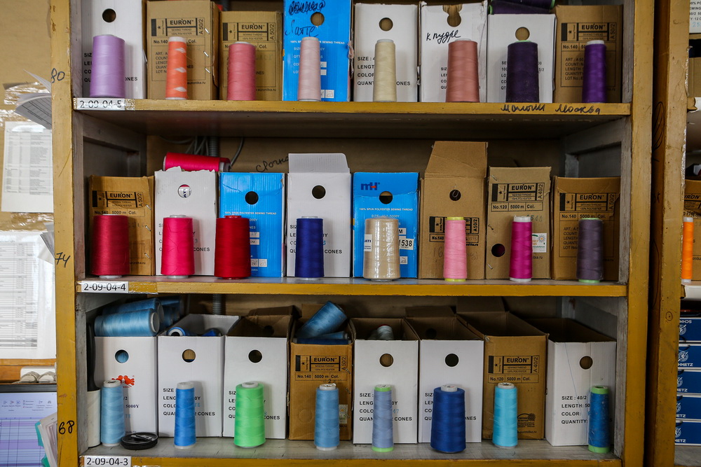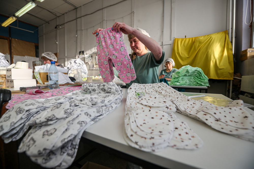 — Мы шьём из разных видов трикотажного полотна. Всё оборудование у нас предназначено для тонких тканей. Используем разные полотна в трёх ценовых сегментах: эконом, средний сегмент и премиум. Последний — это органическая линия из хлопка и бамбук с хлопком. Нитки у нас более тонкие. В одежде для младенцев должны быть внешние швы, и чтобы это не выглядело грубо, нужны более тонкие нитки и настройка оборудования для миниатюрных швов.