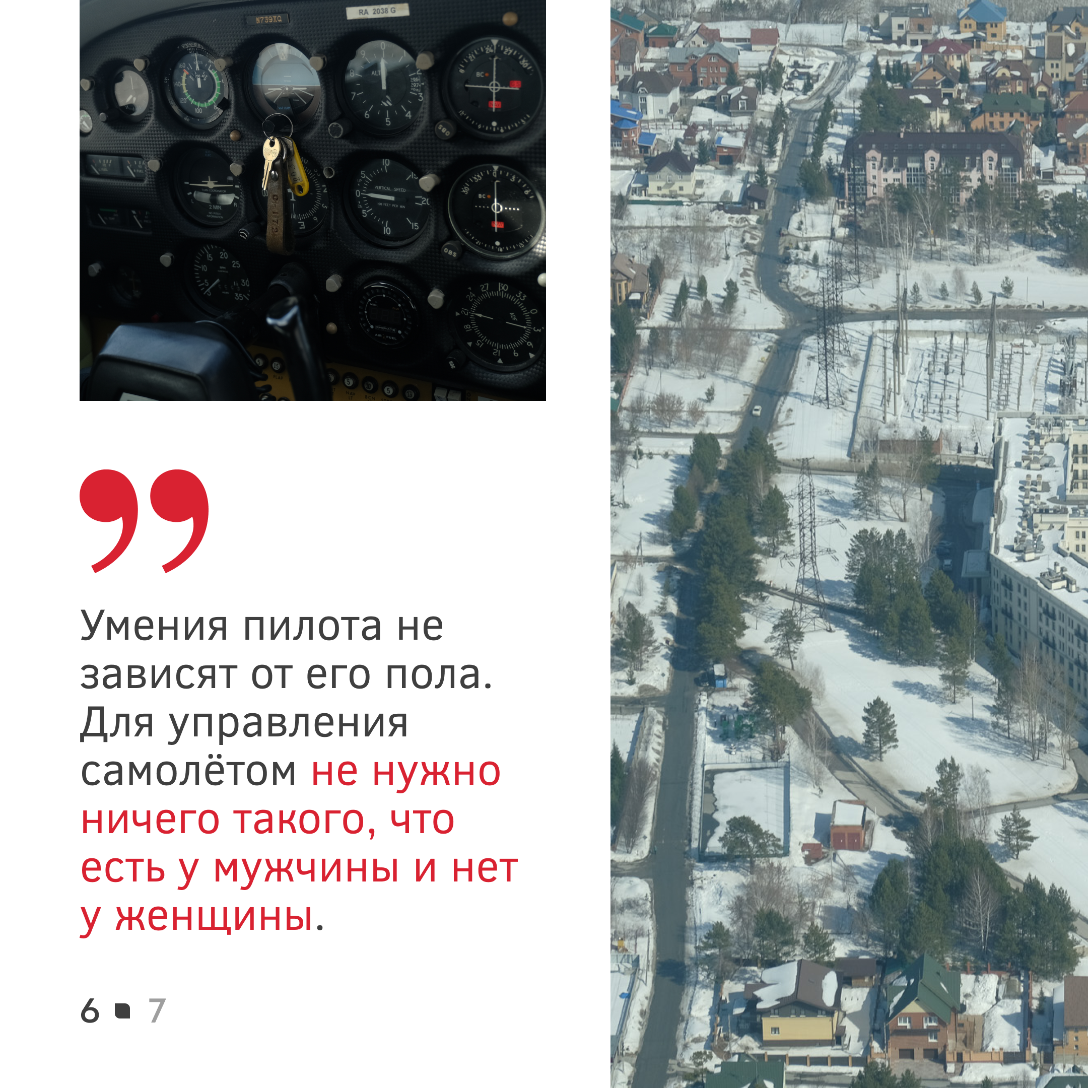 Я не выбирала такой маленький самолёт, просто с них все начинают. Любой пилот — и пассажирского, и истребителя, и какого угодно самолёта — начинал с сухопутного однодвигательного, наподобие того, на котором летаю я.