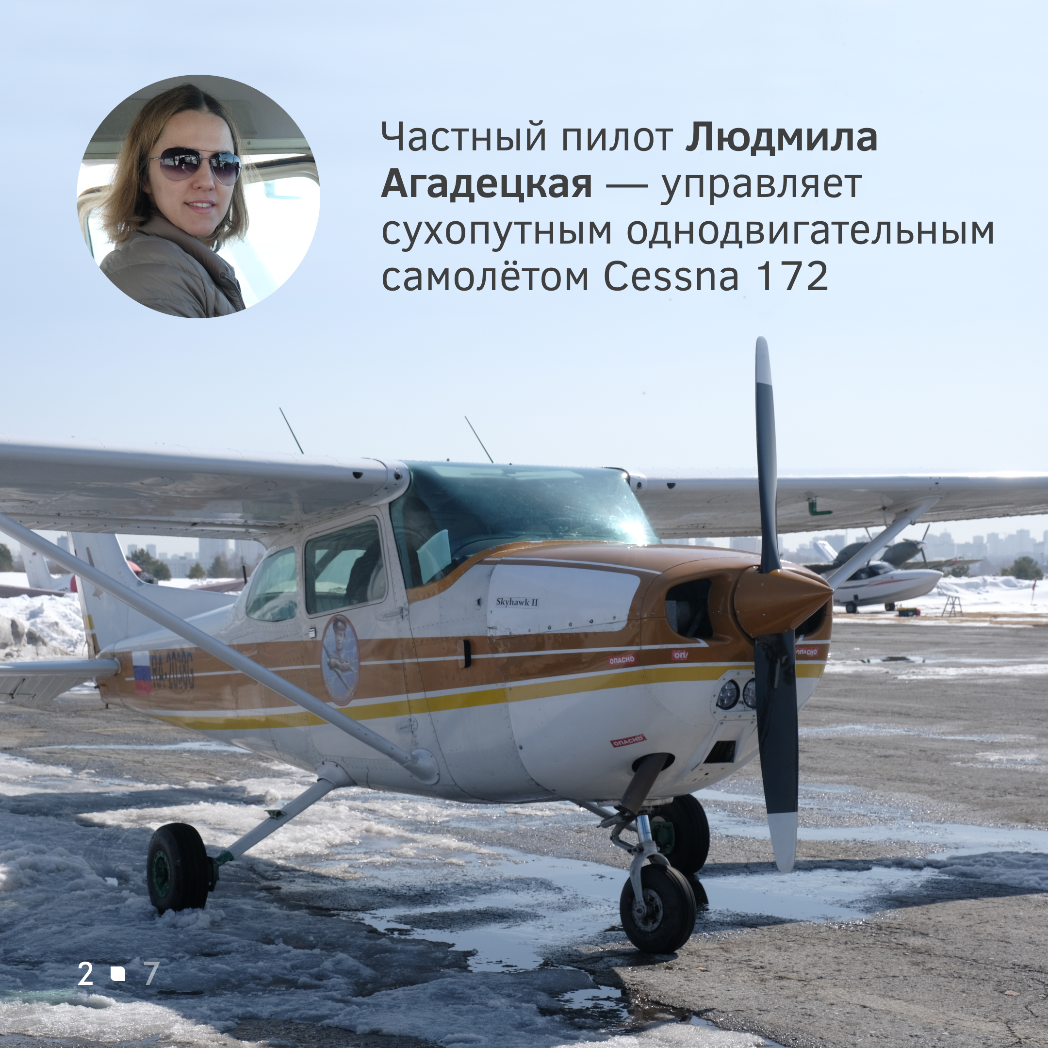 У Людмилы Агадецкой — два образования: экономическое и фармацевтическое. Сейчас она заместитель заведующей аптекой. А ещё — пилот: управляет сухопутным однодвигательным самолётом Cessna 172. На нём Людмила катает пассажиров над Новосибирском. И каждый полёт для неё — удовольствие, которое не сравнить ни с чем. Сложно ли научиться летать, почему это круто и как пассажиры относятся к женщине за штурвалом — Людмила Агадецкая рассказала «Новосибирским новостям».