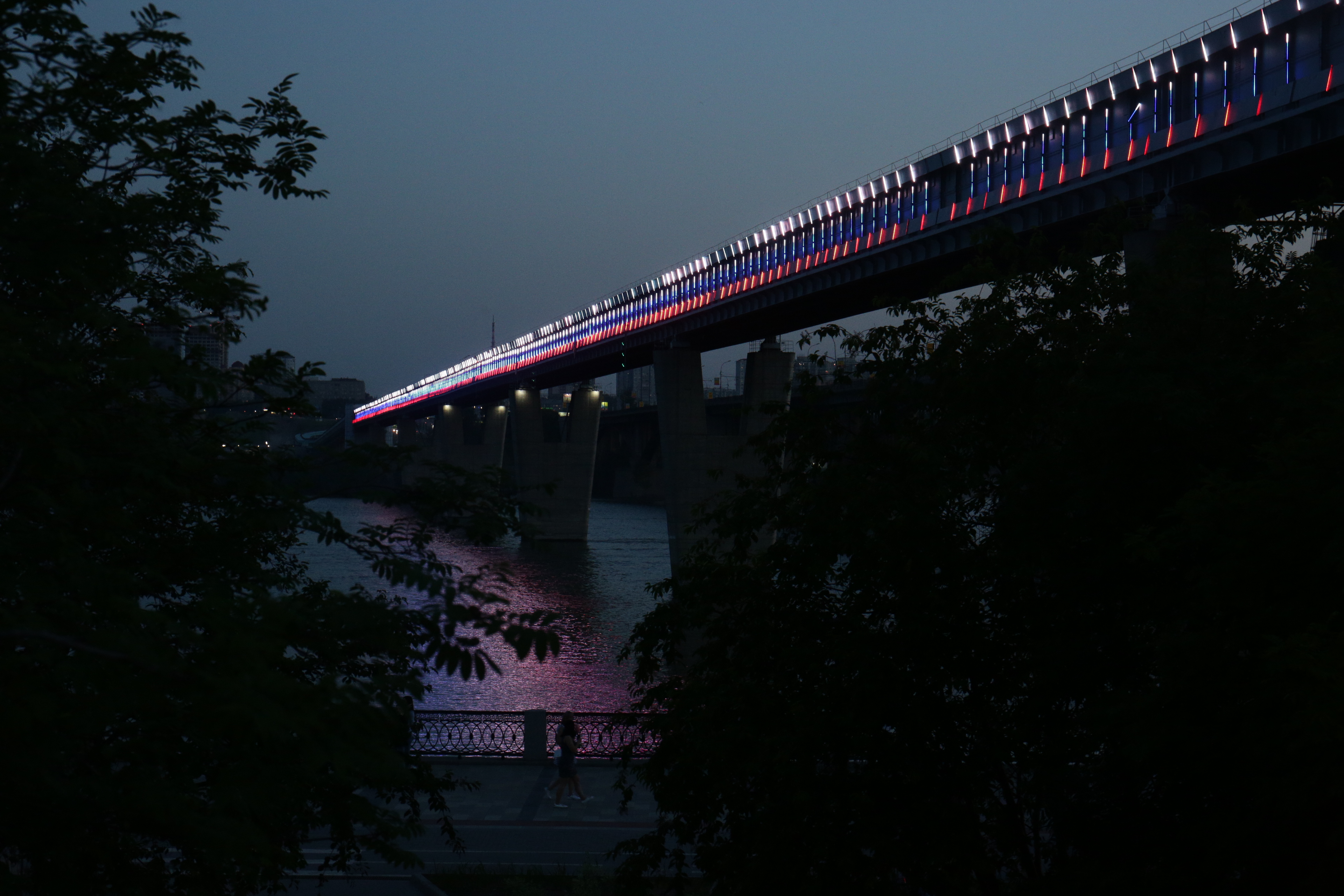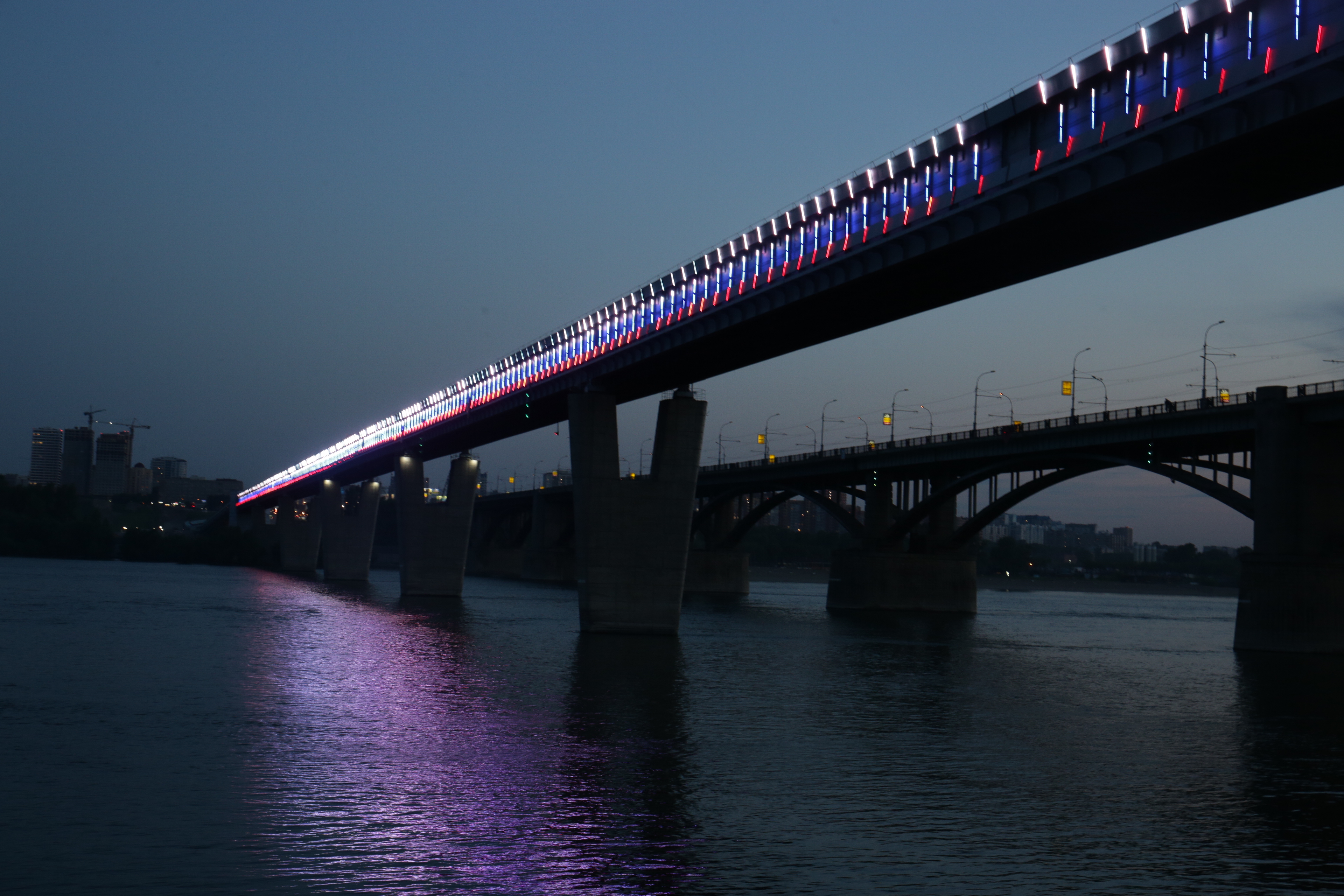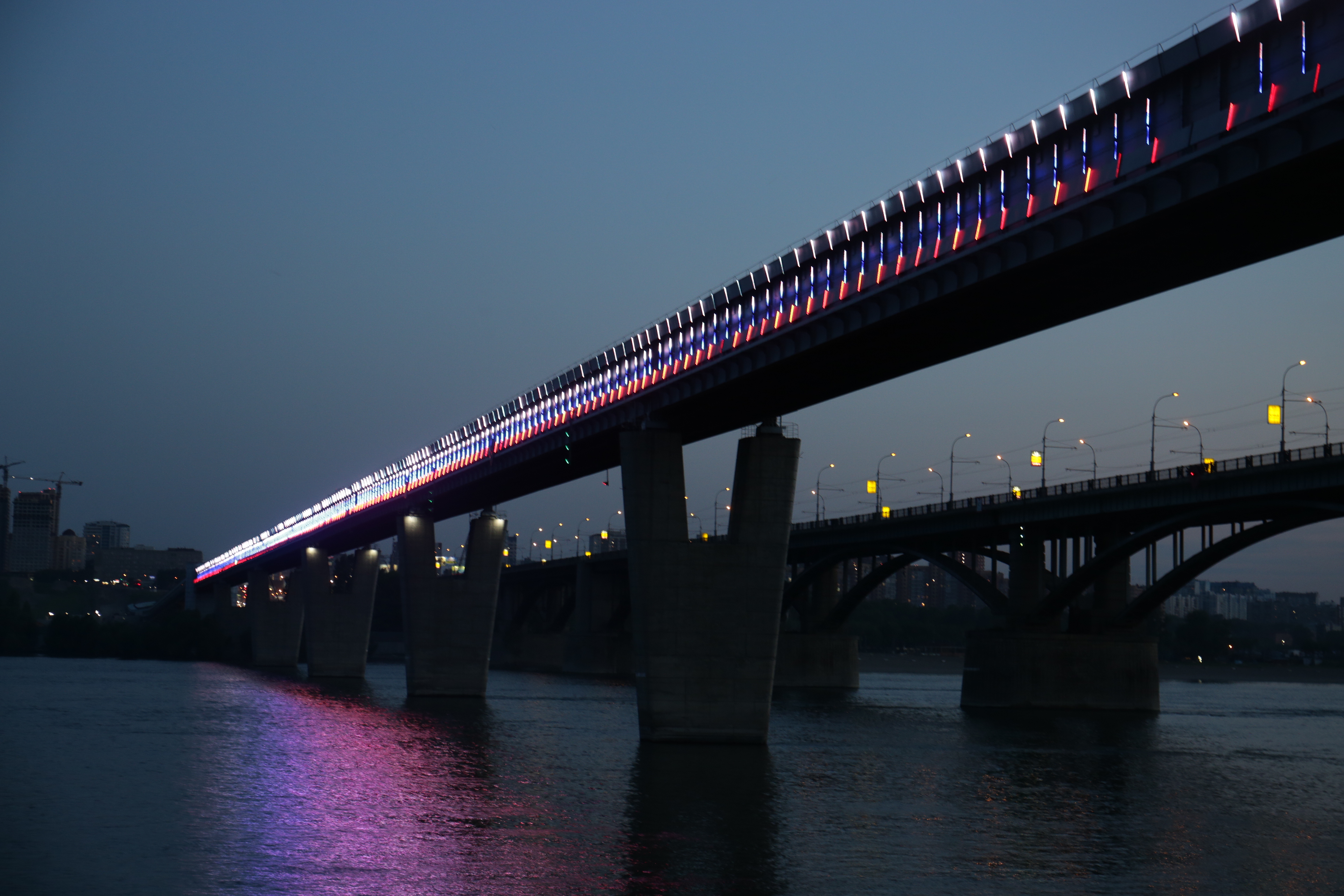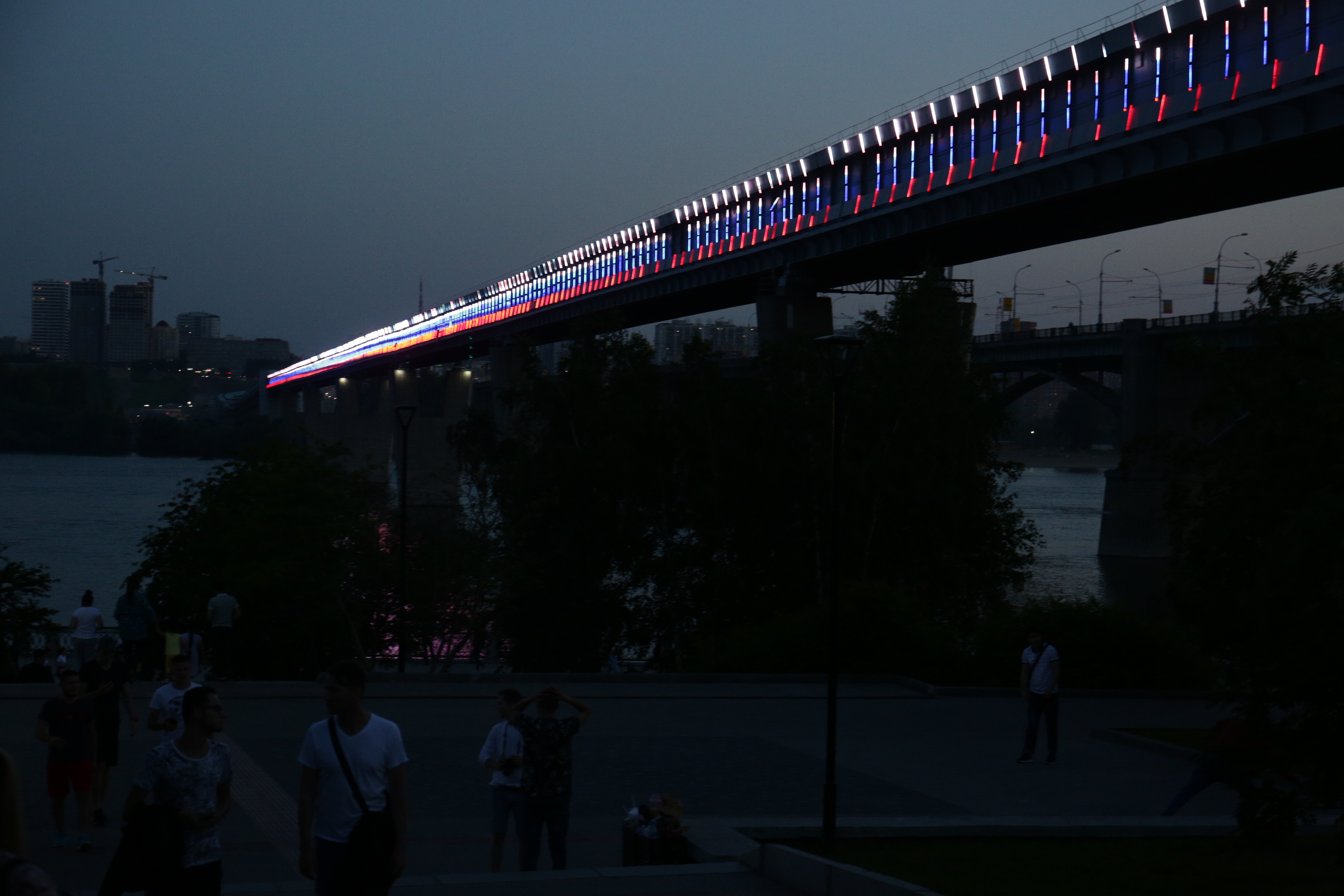 В пятницу, 12 июня, новосибирцы вместе со всей страной отметили один из главных государственных праздников — День России. Из-за пандемии коронавируса в городе в этот раз не проводили массовых мероприятий, но ради поддержания праздничного настроения желающие могли поучаствовать в патриотичных акциях и флешмобах в социальных сетях. А финальным аккордом этого дня стала вечерняя иллюминация в цветах российского триколора на новосибирском метромосту.