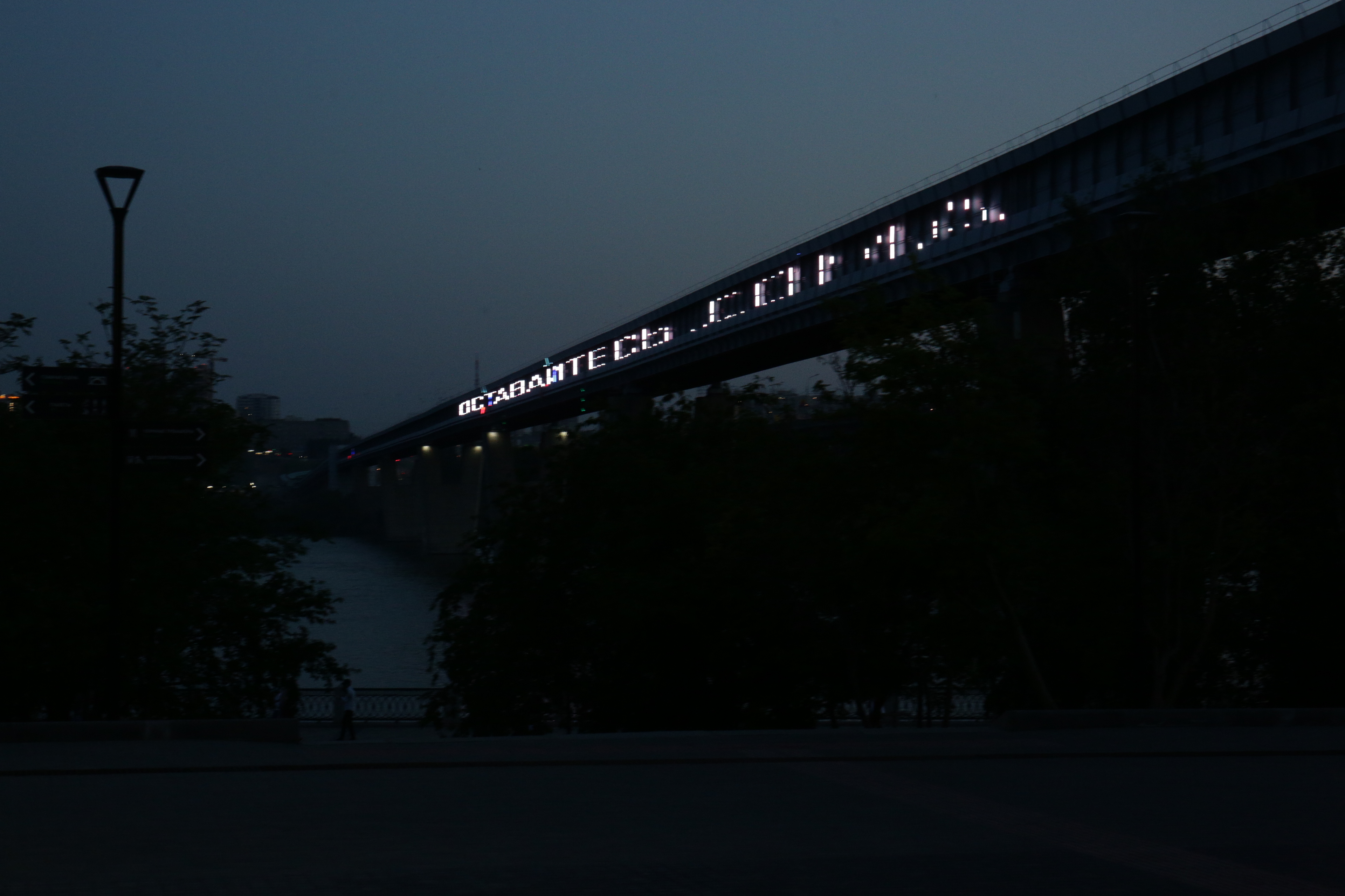 Праздничная бело-сине-красная подсветка на метромосту зажглась в 22:00. Цвета триколора чередовались с надписью «Оставайтесь дома», которая по-прежнему остаётся актуальной в связи со сложной эпидемиологической обстановкой в регионе. «Новосибирские новости» запечатлели, как это было.