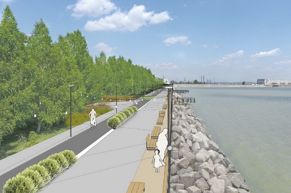 Вместо изрисованных граффити волноотбойников — прозрачное ограждение, рядом — скамейки и площадки для детей. На набережной ОбьГЭС планируют масштабную реконструкцию. Бетонные плиты хотят засыпать камнями, променад предлагают расширить и разбить на несколько зон, сделать отдельные дорожки для пеших прогулок и для велосипедистов. В мэрии разработали дизайн-проект и представили его жителям.