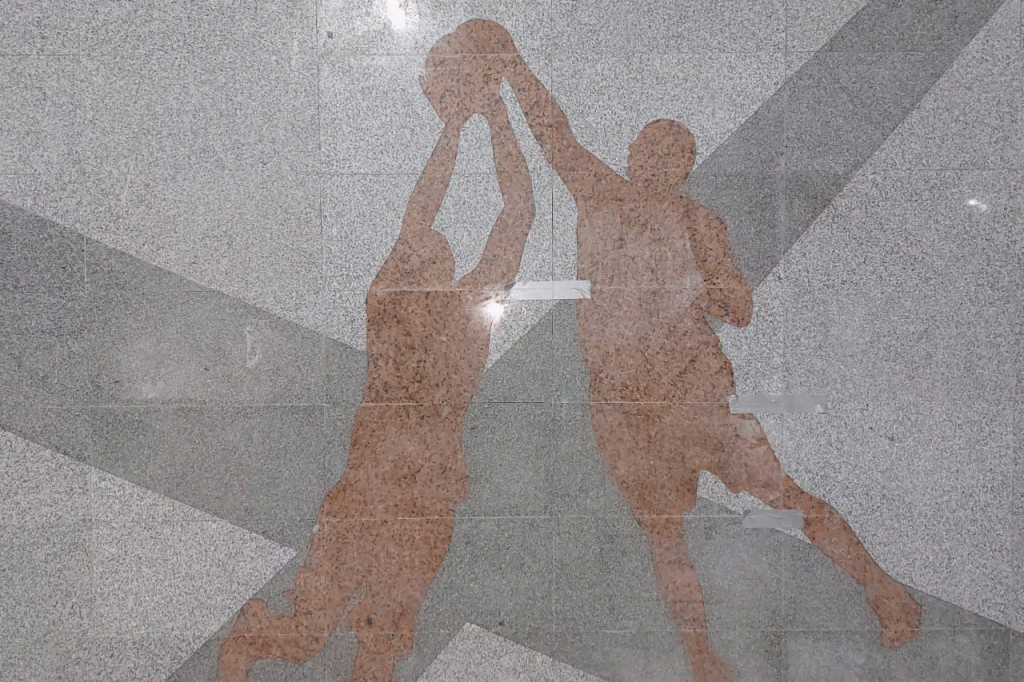 Восемь трёхметровых панно украсят зоны эскалатора и вестибюля. Два — с фигуристкой и хоккеистом — сделаны из нержавеющей стали. Остальные шесть — из натурального камня. Их крепят на стену, подшитую аквапанелями.
