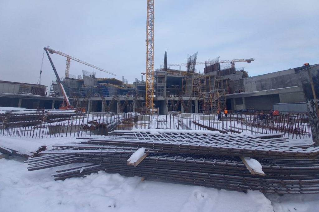 «На объекте идёт монтаж металлоконструкций многофункциональной ледовой и тренировочной арен, бетонирование монолитных вертикальных конструкций и перекрытий, завершается бетонирование отдельно стоящих ростверков», — сообщает пресс-служба областного правительства.