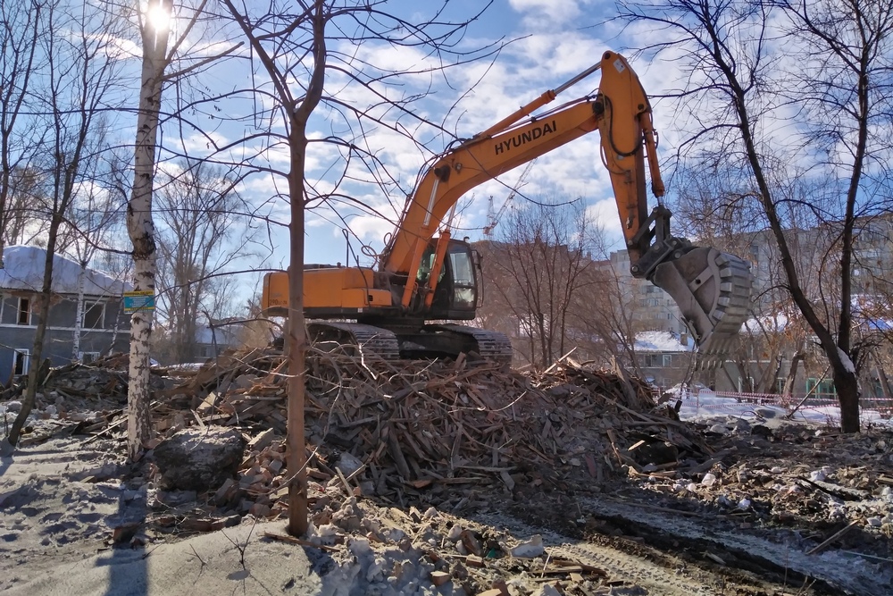 На Телецентре снесли первую старую двухэтажку под строительство высотки