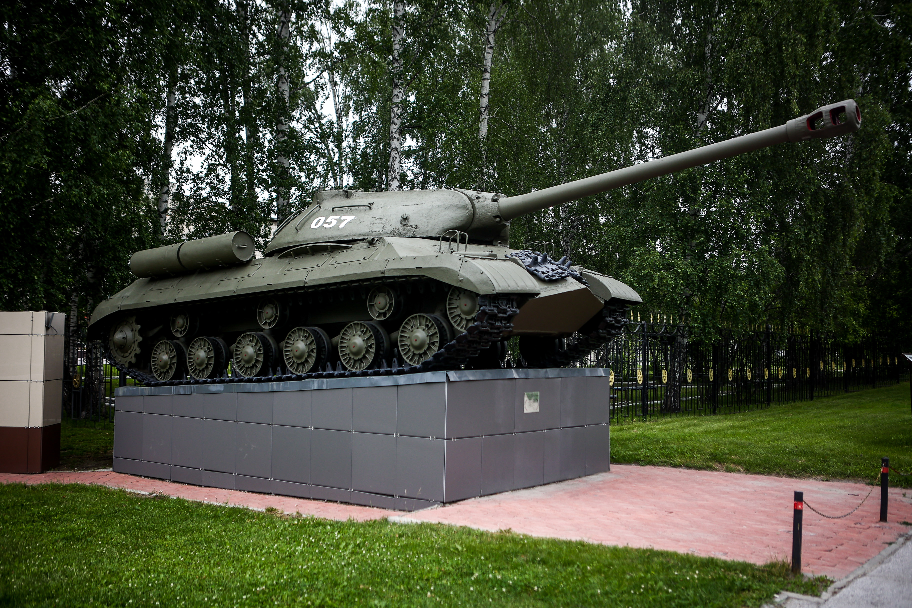 Рядом с Новосибирским высшим военным командным училищем на улице Иванова, 49 в Академгородке стоят две настоящие боевые машины: БМП и ИС-3 — советский тяжёлый танк, разработанный в разгар Великой Отечественной. Аббревиатура ИС означает «Иосиф Сталин» — технику этой серии выпускали в 1943–1953 годах.