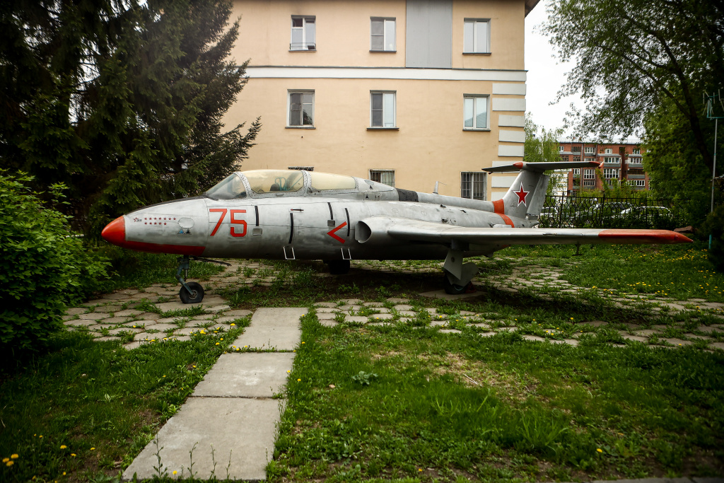 Самолёт Ли-2 с бортовым номером 39 выглядывает из-за забора рядом с домом на Добролюбова, 150 в Октябрьском районе. Эта машина появился в Новосибирске в самом конце 90-х годов. Источники говорят, что в наш город её привезли из Норильска. В глубине территории ещё есть МиГ-17, Миг-23МЛД и МиГ-29 в окраске 120-го ГИАП (Домна) с акульими пастями, МиГ-31, Су-17М4 и Ми-8. В хорошем состоянии, но без двигателей. Кроме этого, имеются образцы техники ПВО: от зенитных пулемётов до С-200. Посмотреть на экспозицию можно только по договорённости. Это самый крупный за Уралом музей авиации и войск противовоздушной обороны.